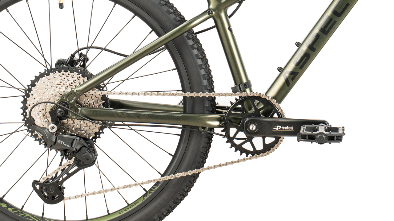 Передает вращение от шатунов на кассету. Теоретически цепь представляет собой подшипники скольжения (втулки), соединенные между собой боковыми пластинами. Цепи разнятся по длине, то есть количеству звеньев, и по ширине. Чем больше скоростей на велосипеде, тем цепь уже. Данный элемент является открытым, поэтому нуждается в частой смазке и чистке. Во многом плавное переключение передач, а соответственно и ход велосипеда зависят от смазки цепи и степени ее загрязнения.