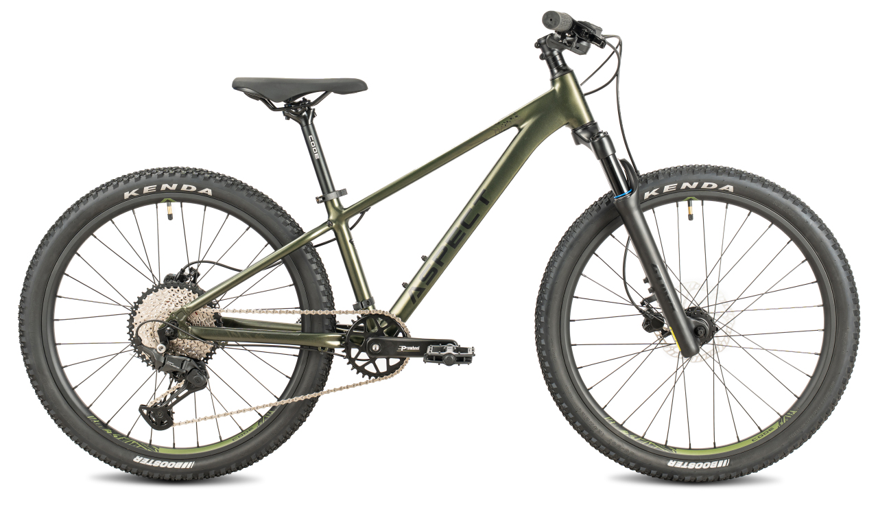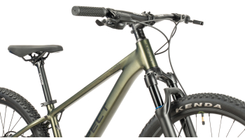 Подростковый горный велосипед с оборудованием предпрофессионального класса Shimano, 10 скоростей. Технические особенности: легкая алюминиевая рама (сплав 6061, гидроформинг, скрытая прокладка тросов, кареточный стакан BSA, прямой рулевой стакан, съёмный петух, крепление калипера IS), амортизационная вилка GTMRK 530 Air MLO (воздушно-масляная, механическая блокировка, ход 80 мм, крепление калипера PM, алюминиевые ноги), двойные алюминиевые обода Alloy Double Wall (под ниппель AV), дисковые гидравлические тормоза Tektro TKD-176 (роторы 160/160 мм). Подходит для активной езды по различным дорогам и пересеченной местности. Диаметр колес - 24 дюйма. Вес - 12 кг.