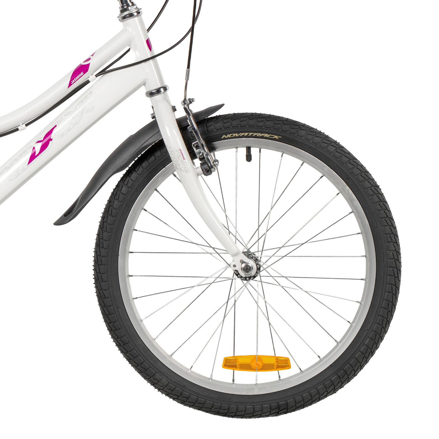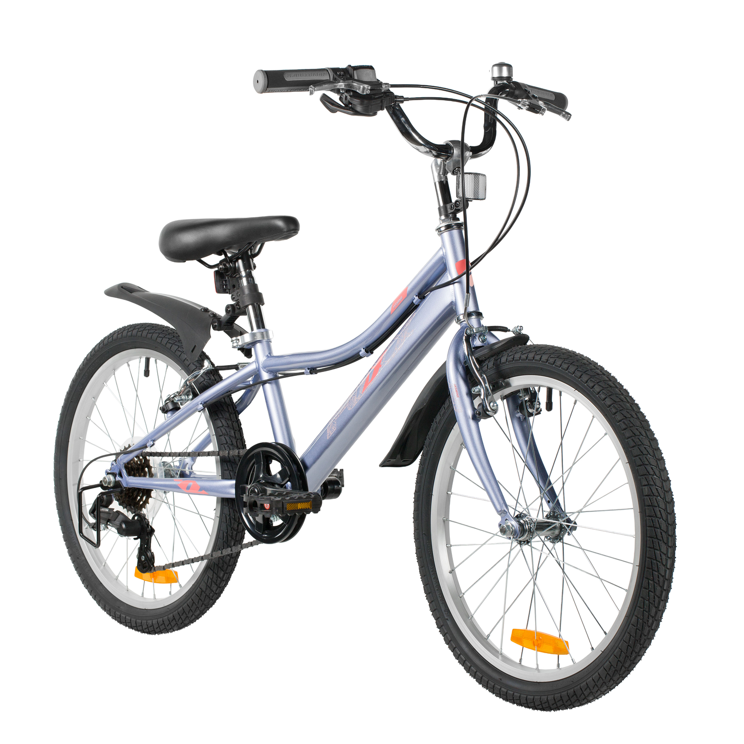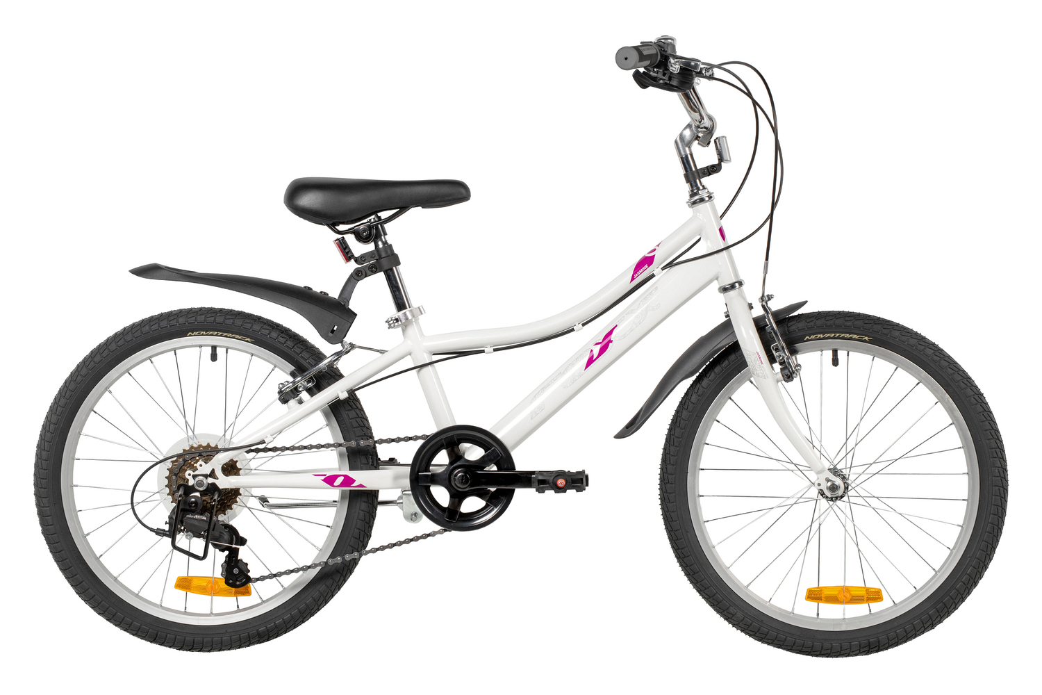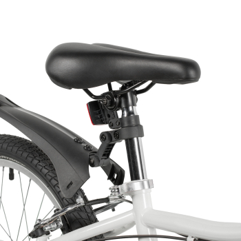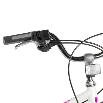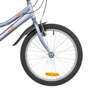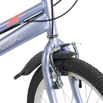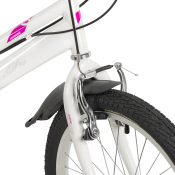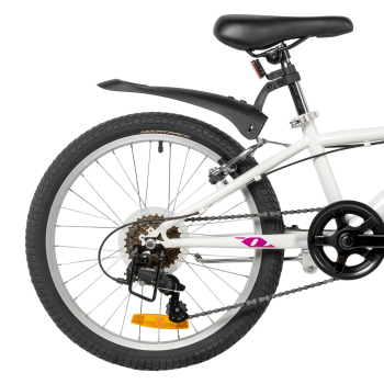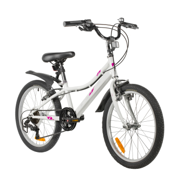 Велосипед, предназначенный для девочек в возрасте от пяти до девяти лет, с оборудованием начального класса Microshift, 6 скоростей. Технические особенности: прочная стальная рама (открытая проводка, прямой рулевой стакан, кареточный стакан BSA, интегрированный петух, крепление калипера IS), жесткая стальная вилка, двойные алюминиевые обода (под AV ниппель), ободные механические тормоза Sparkle V-brake (стальные рычаги), защита цепи, защита заднего переключателя, катафоты, звонок, подножка. Подходит для обучения и прогулочного катания в городских условиях. Диаметр колес - 20 дюймов. Вес - 12,5 кг.