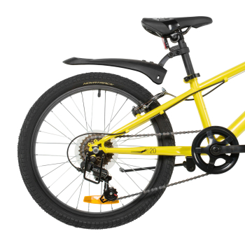 Велосипед, предназначенный для детей в возрасте от пяти до девяти лет, с оборудованием начального класса Shimano, 6 скоростей. Технические особенности: прочная стальная рама (открытая проводка, прямой рулевой стакан, кареточный стакан BSA, крепление калипера IS), амортизационная вилка (крепление под V-brake), двойные алюминиевые обода (под AV ниппель), надежные ободные тормоза Sparkle V-brake (стальные рычаги), пластиковые крылья, защита цепи, защита заднего переключателя, катафоты, звонок, подножка. Подходит для обучения и прогулочного катания в городских условиях. Диаметр колес - 20 дюйма. Вес - 13,4 кг.