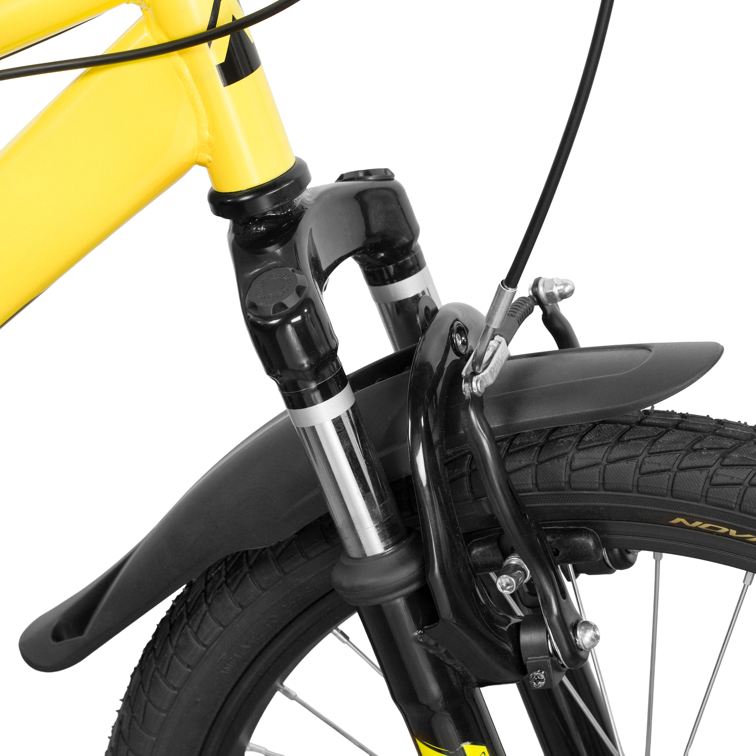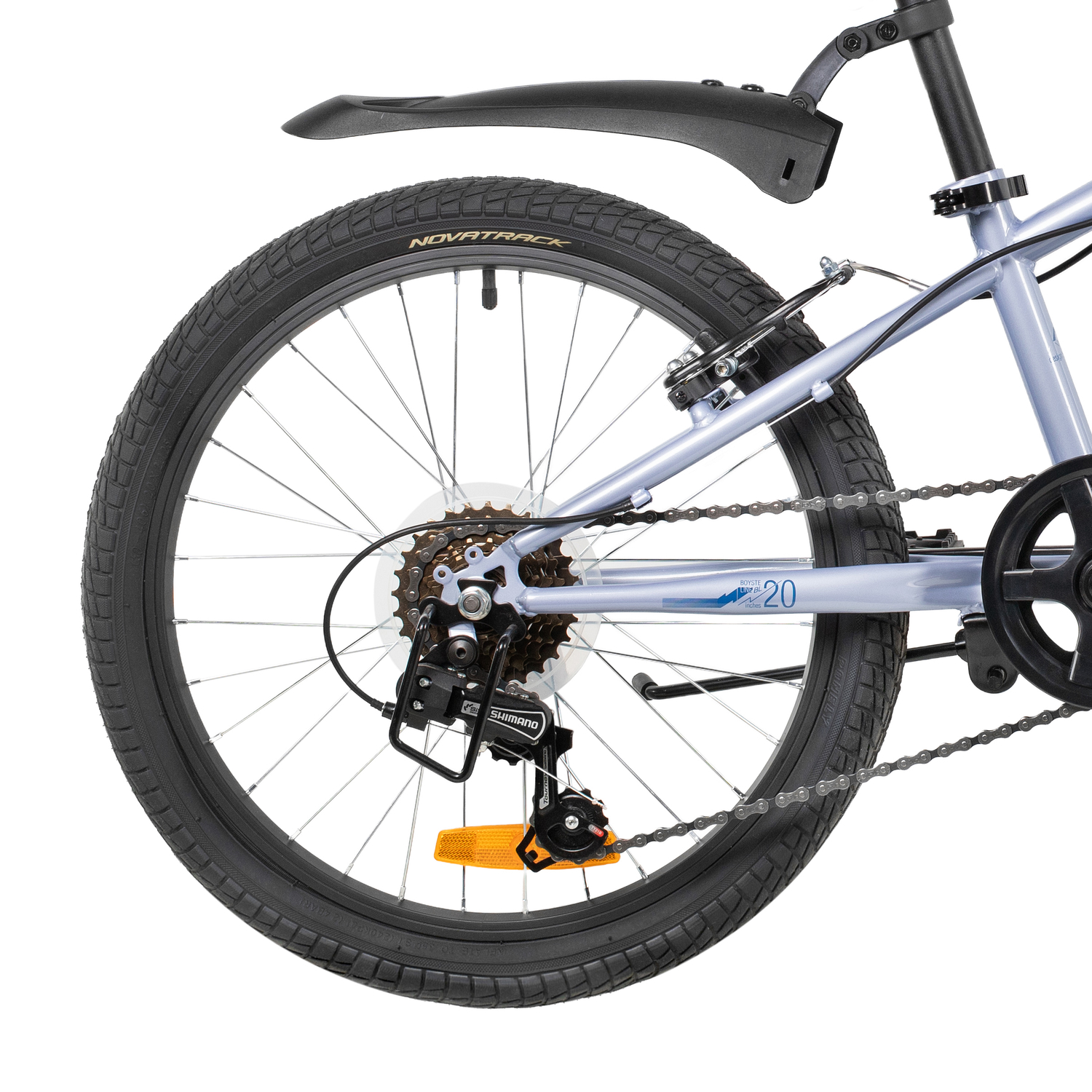 Велосипед, предназначенный для детей в возрасте от пяти до девяти лет, с оборудованием начального класса Shimano, 6 скоростей. Технические особенности: прочная стальная рама (открытая проводка, прямой рулевой стакан, кареточный стакан BSA, крепление калипера IS), амортизационная вилка (крепление под V-brake), двойные алюминиевые обода (под AV ниппель), надежные ободные тормоза Sparkle V-brake (стальные рычаги), пластиковые крылья, защита цепи, защита заднего переключателя, катафоты, звонок, подножка. Подходит для обучения и прогулочного катания в городских условиях. Диаметр колес - 20 дюйма. Вес - 13,4 кг.