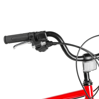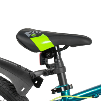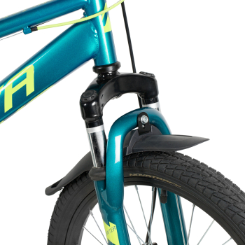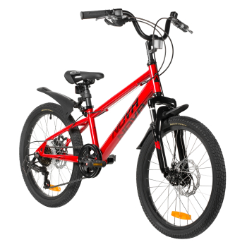 Велосипед, предназначенный для детей в возрасте от пяти до девяти лет, с оборудованием начального класса Shimano, 6 скоростей. Технические особенности: прочная стальная рама (открытая проводка, прямой рулевой стакан, кареточный стакан BSA, крепление калипера IS), амортизационная вилка (крепление калипера IS), двойные алюминиевые обода (под AV ниппель), дисковые механические тормоза STG (роторы 160/140 мм), пластиковые крылья, защита цепи, защита заднего переключателя, катафоты, звонок, подножка. Подходит для обучения и прогулочного катания в городских условиях. Диаметр колес - 20 дюйма. Вес - 13,9 кг.