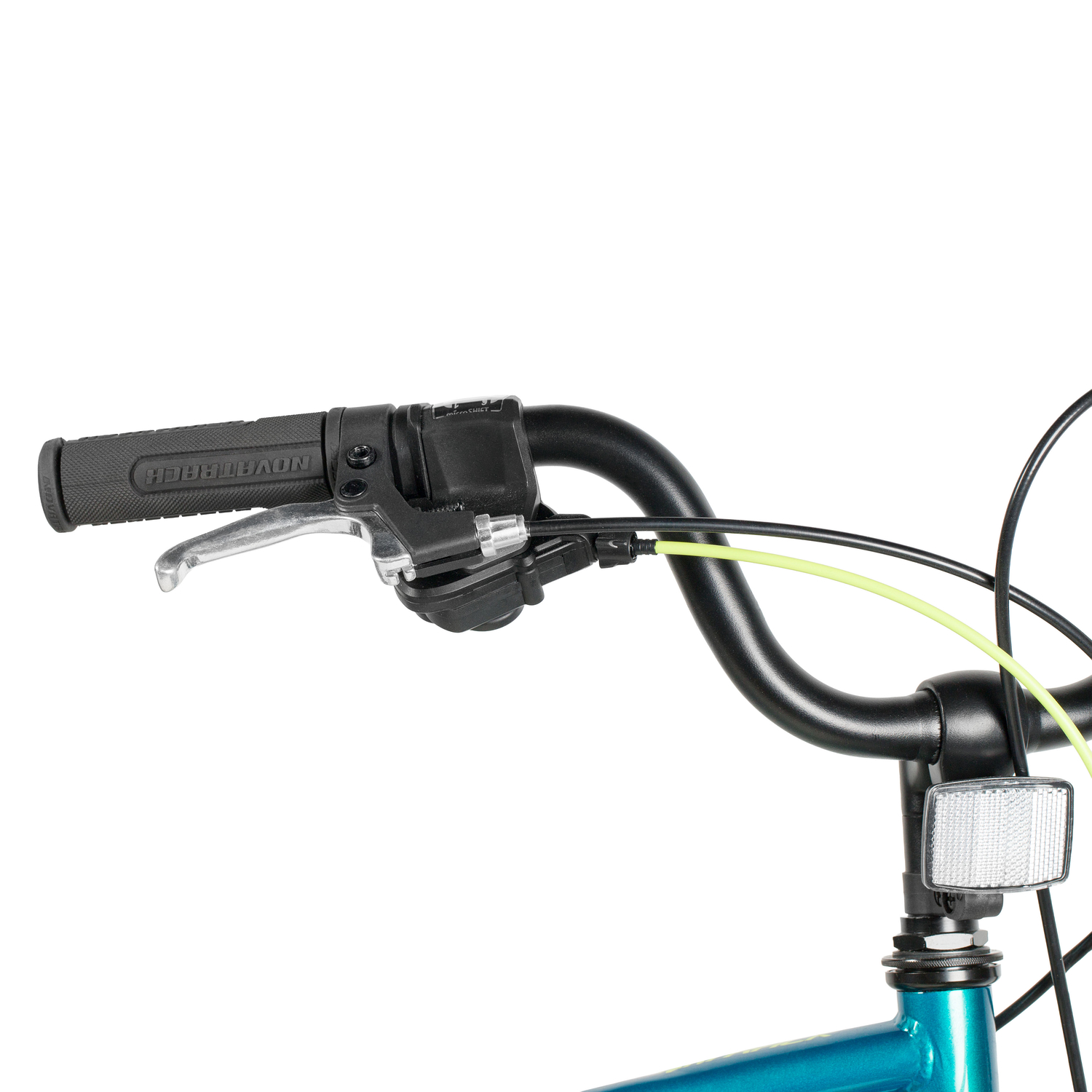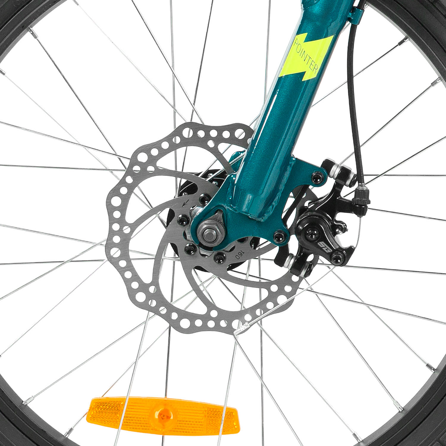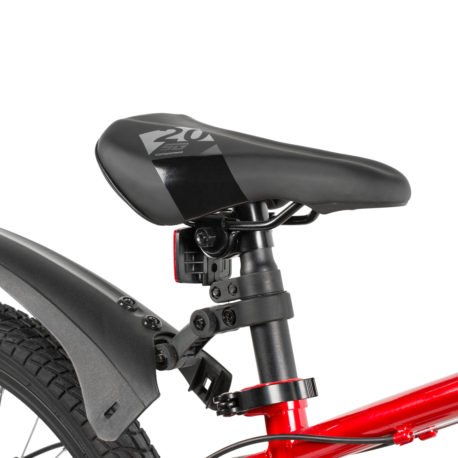 Велосипед, предназначенный для детей в возрасте от пяти до девяти лет, с оборудованием начального класса Shimano, 6 скоростей. Технические особенности: прочная стальная рама (открытая проводка, прямой рулевой стакан, кареточный стакан BSA, крепление калипера IS), амортизационная вилка (крепление калипера IS), двойные алюминиевые обода (под AV ниппель), дисковые механические тормоза STG (роторы 160/140 мм), пластиковые крылья, защита цепи, защита заднего переключателя, катафоты, звонок, подножка. Подходит для обучения и прогулочного катания в городских условиях. Диаметр колес - 20 дюйма. Вес - 13,9 кг.
