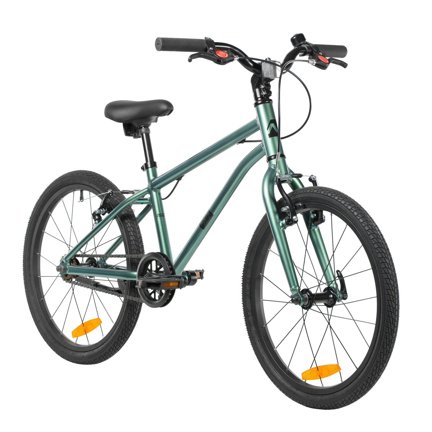 Велосипед, предназначенный для детей в возрасте от пяти до девяти лет, без переключения передач. Технические особенности: легкая алюминиевая рама (скрытая проводка, прямой рулевой стакан, кареточный стакан BSA), жесткая алюминиевая вилка, двойные алюминиевые обода (под ниппель AV), ободные механические тормоза Logan V-brake (алюминиевые рычаги), защита цепи, подножка, звонок, катафоты. Подходит для обучения и прогулочного катания в городских условиях. Диаметр колес - 20 дюймов. Вес - 7,5 кг.