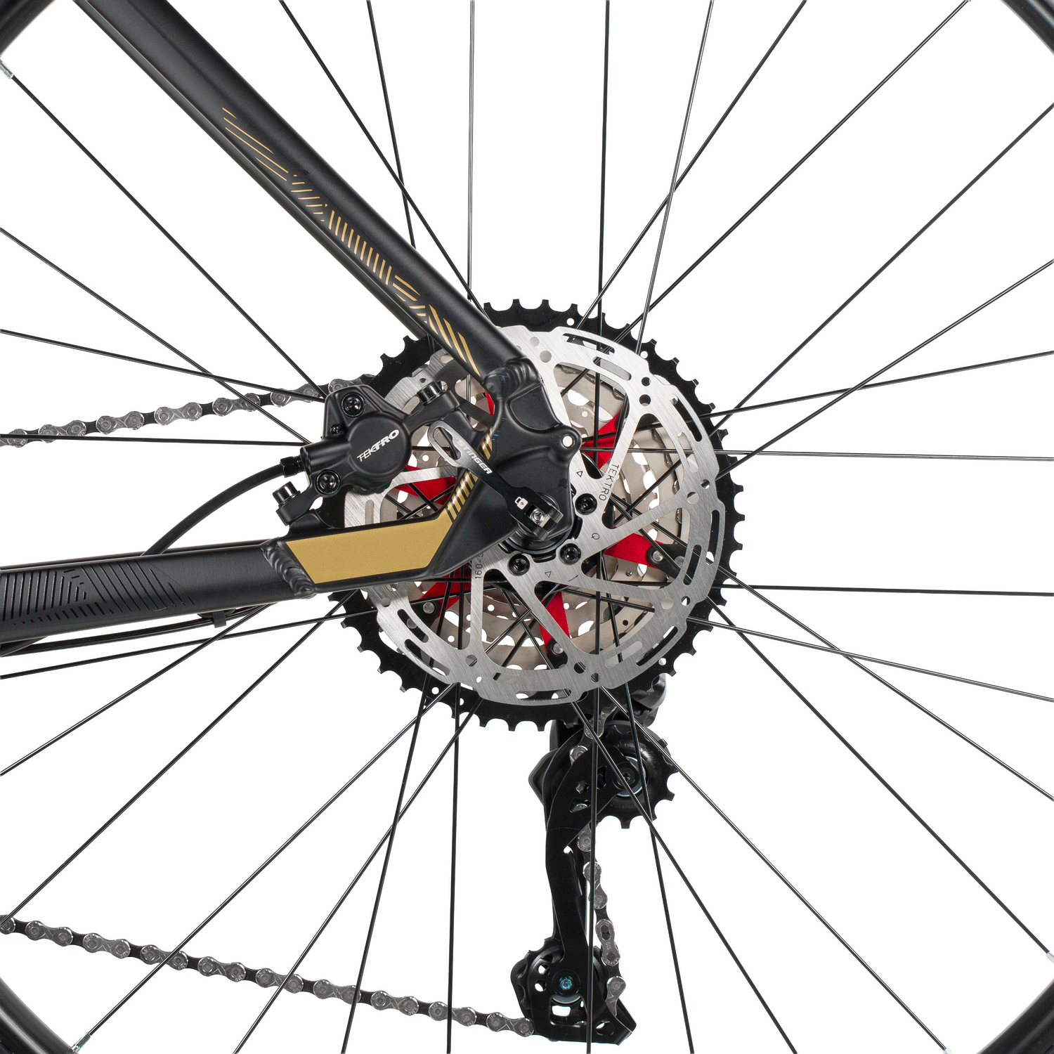 Передает вращение от шатунов на кассету. Теоретически цепь представляет собой подшипники скольжения (втулки), соединенные между собой боковыми пластинами. Цепи разнятся по длине, то есть количеству звеньев, и по ширине. Чем больше скоростей на велосипеде, тем цепь уже. Данный элемент является открытым, поэтому нуждается в частой смазке и чистке. Во многом плавное переключение передач, а соответственно и ход велосипеда зависят от смазки цепи и степени ее загрязнения.