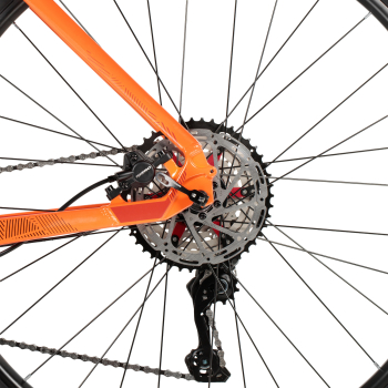 Легкий хардтейл для езды в стиле кросс-кантри с оборудованием предпрофессионального класса Shimano, 18 скоростей. Технические особенности: алюминиевая рама (сплав 6061-T6, гидроформинг, баттинг, скрытая проводка, сглаженные швы, конический рулевой стакан, кареточный стакан BSA, съемный петух, крепление калипера PM), амортизационная вилка X-Fusion Migo 32 (воздушно-масляная, ход 100 мм, гидравлическая блокировка, крепление калипера PM), двойные алюминиевые обода STG XC/25 (под ниппель Presta FV, подходят для бескамерного использования), дисковые гидравлические тормоза Tektro M275 (роторы 160/160 мм). Подходит для активной езды по различным дорогам и пересеченной местности. Диаметр колес - 29 дюймов. Вес - 14 кг.