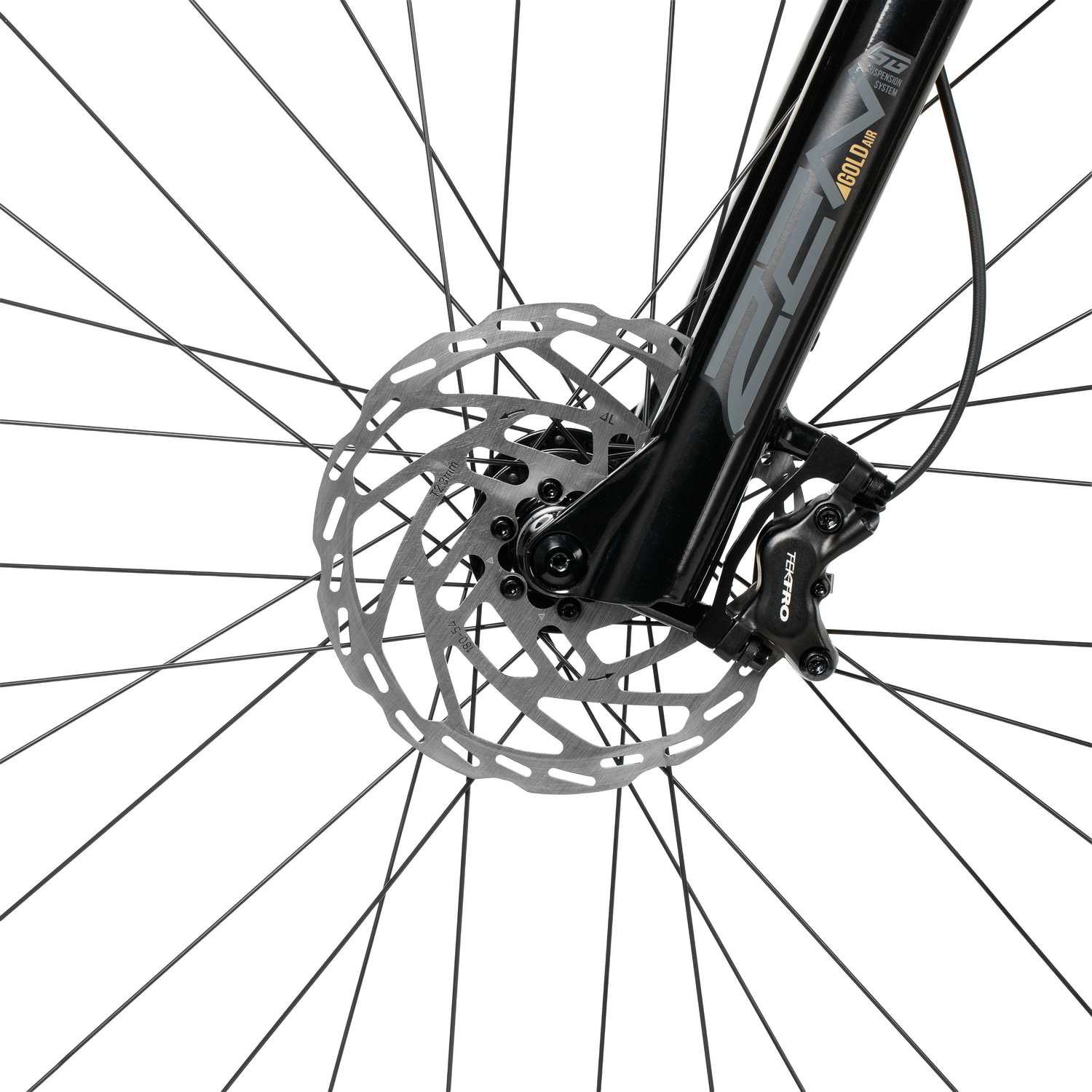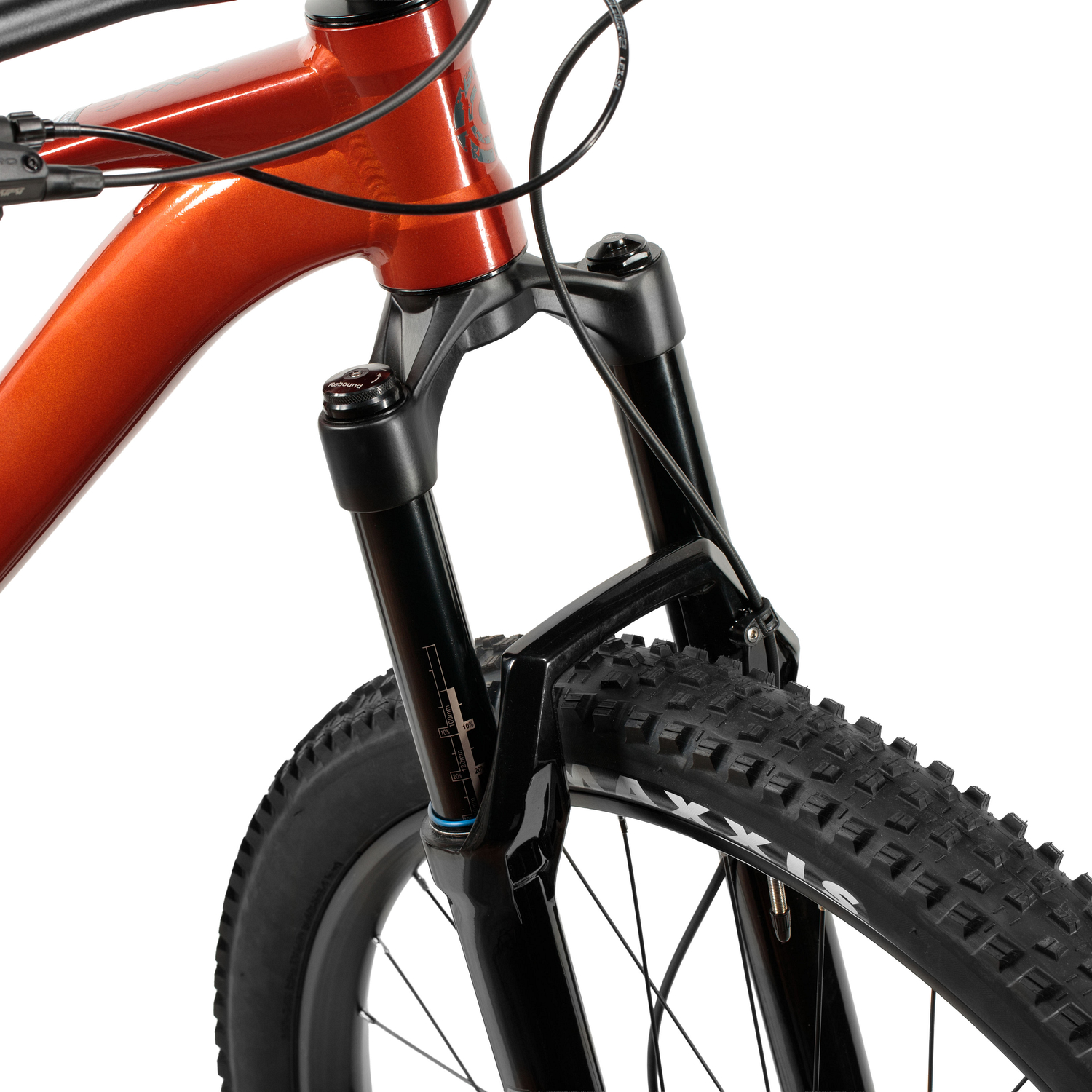 Двухподвес продвинутого уровня с оборудованием предпрофессионального класса Microshift, 9 скоростей. Технические особенности: алюминиевая рама (сплав 6061-T6, гидроформинг, четырехрычажная задняя подвеска 130 мм, скрытая проводка Magicroute, прямой рулевой стакан, кареточный стакан BSA, дропауты под ось Boost, крепление калипера PM), амортизационная вилка STG Zen Gold (воздушно-масляная, ход 130 мм, регулировка отскока, дропауты под ось Boost, крепление калипера PM), задний амортизатор KS Suspension 562R (воздушный), двойные алюминиевые обода WTB ST i35 (под ниппель Presta FV), дисковые гидравлические тормоза Tektro M535 (роторы 180/180 мм). Подходит для активной езды по различным дорогам и пересеченной местности. Диаметр колес - 29 дюймов. Вес - 15 кг.