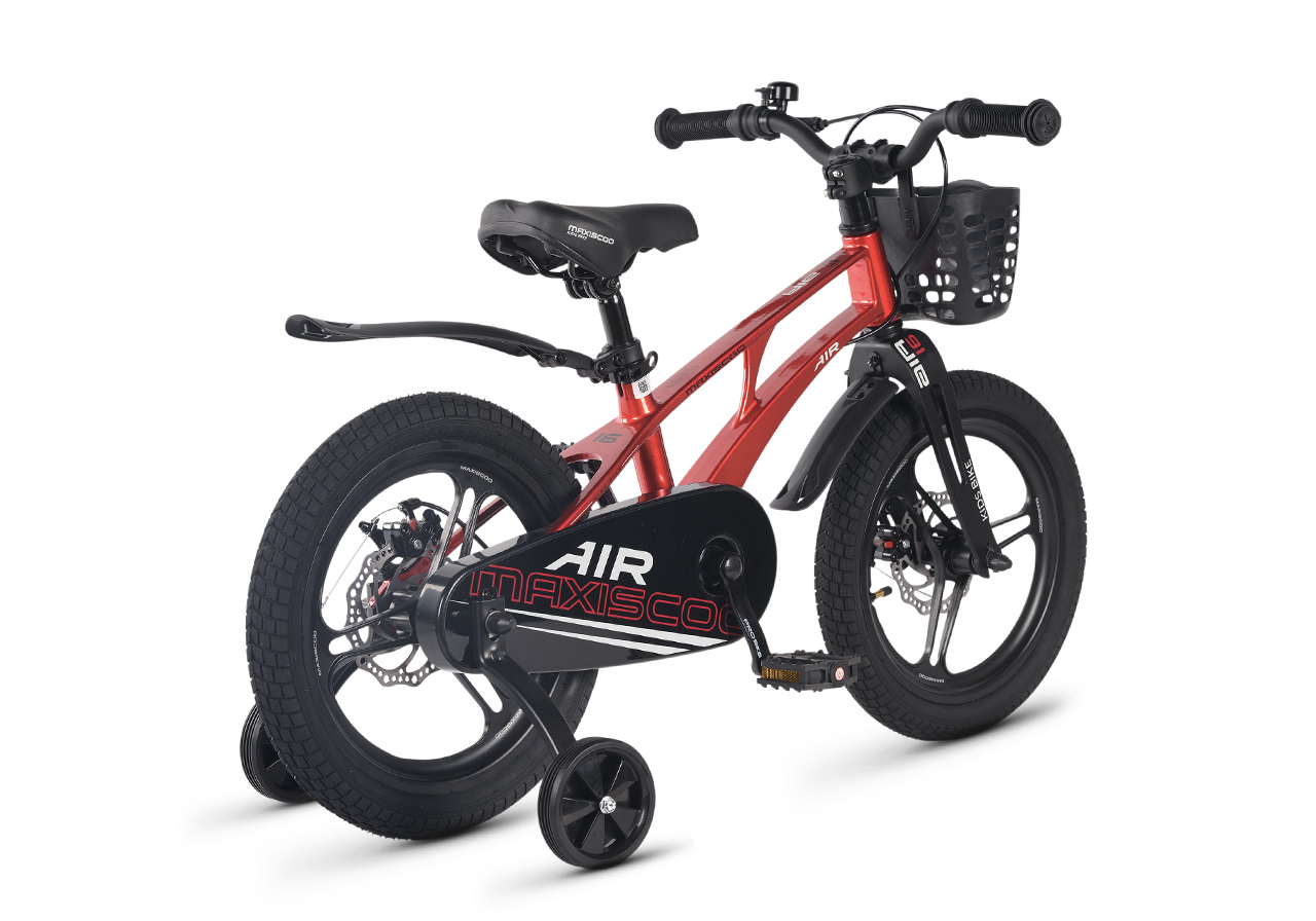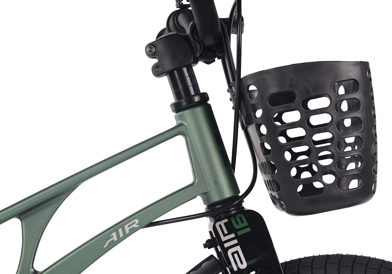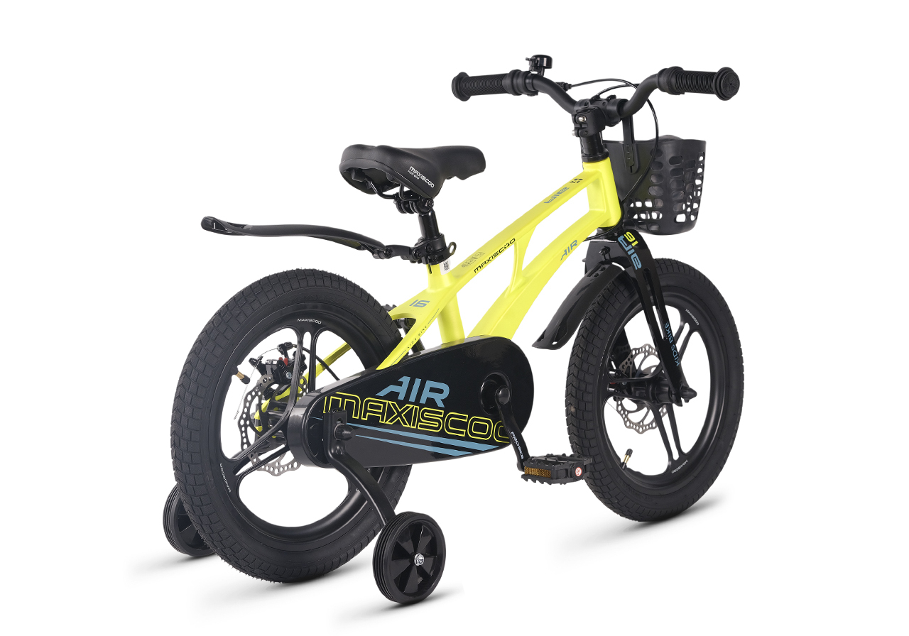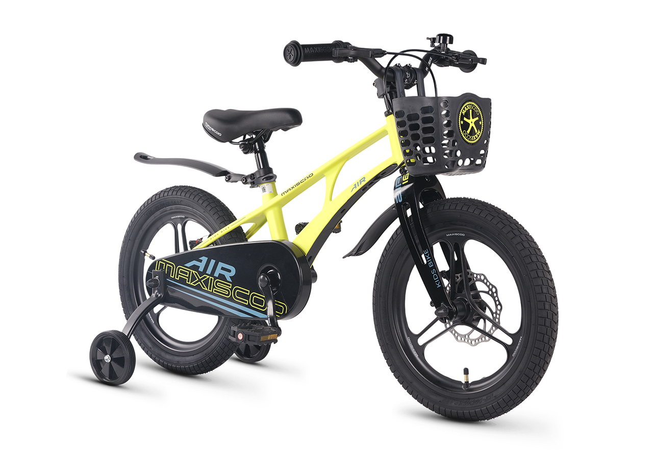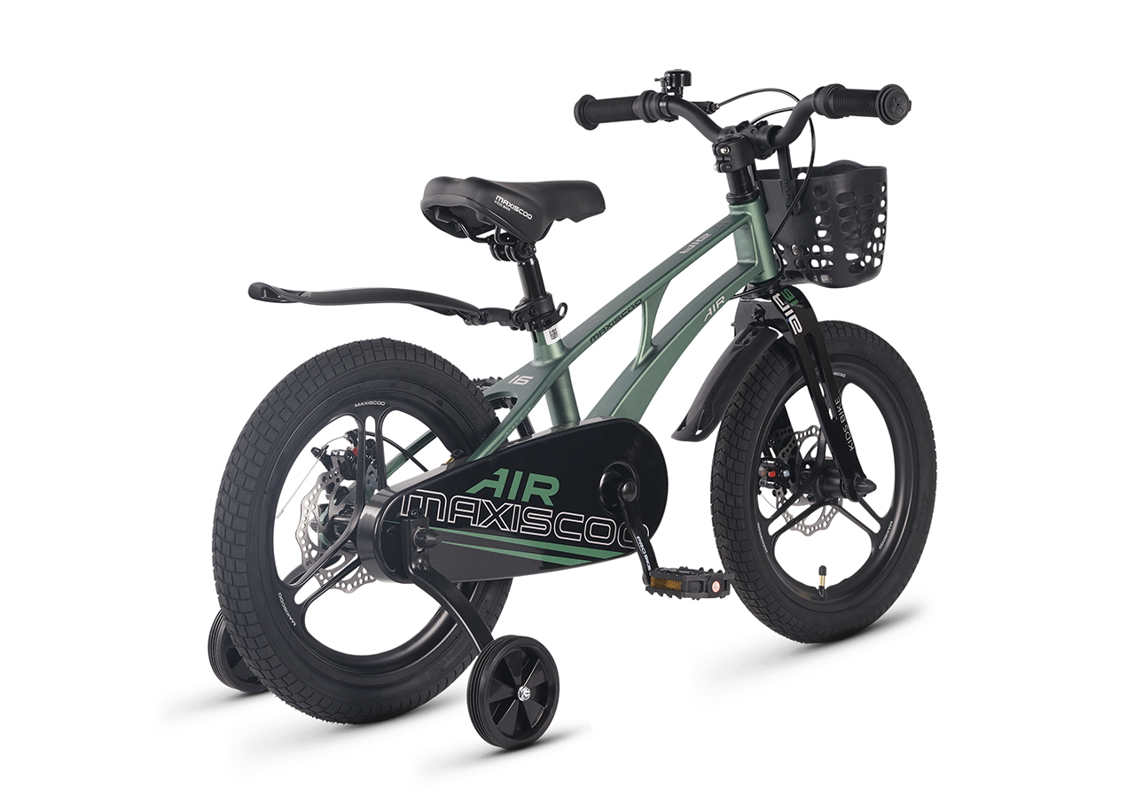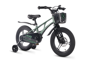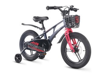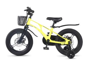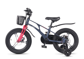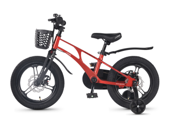 Велосипед, предназначенный для детей в возрасте от трех до шести лет, без переключения передач. Технические особенности: легкая рама из магниевого сплава (скрытая проводка, прямой рулевой стакан, крепление калипера IS), жесткая вилка из магниевого сплава (крепление калипера IS), литые колеса из магниевого сплава (трёхлучевые, под ниппель AV), дисковые механические тормоза (роторы 140/140 мм), полная защита цепи, съемные боковые колеса, пластиковые крылья, передняя корзинка, звонок. Максимальная нагрузка - до 40 кг. Подходит для обучения и прогулочного катания в городских условиях. Диаметр колес - 16 дюймов. Вес - 9,4 кг.
