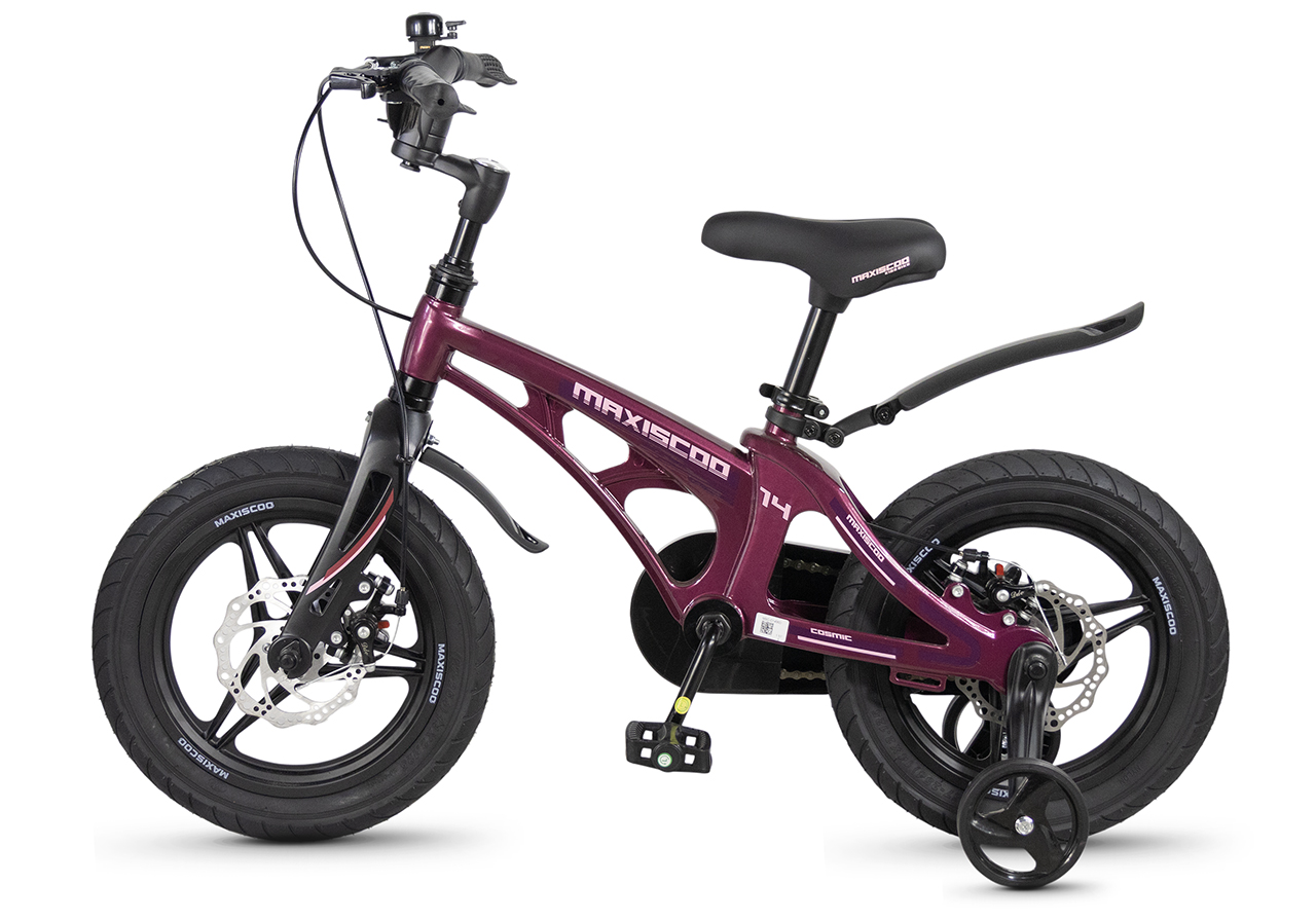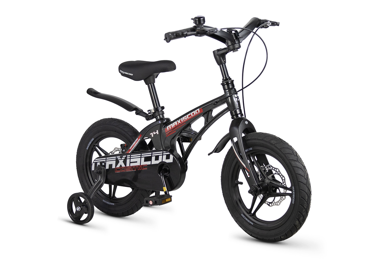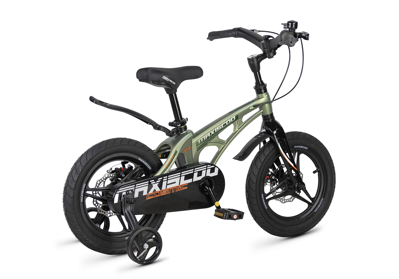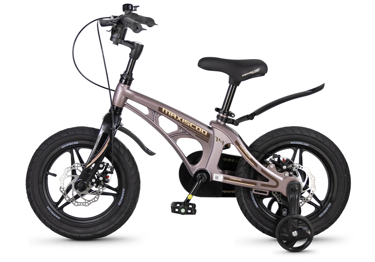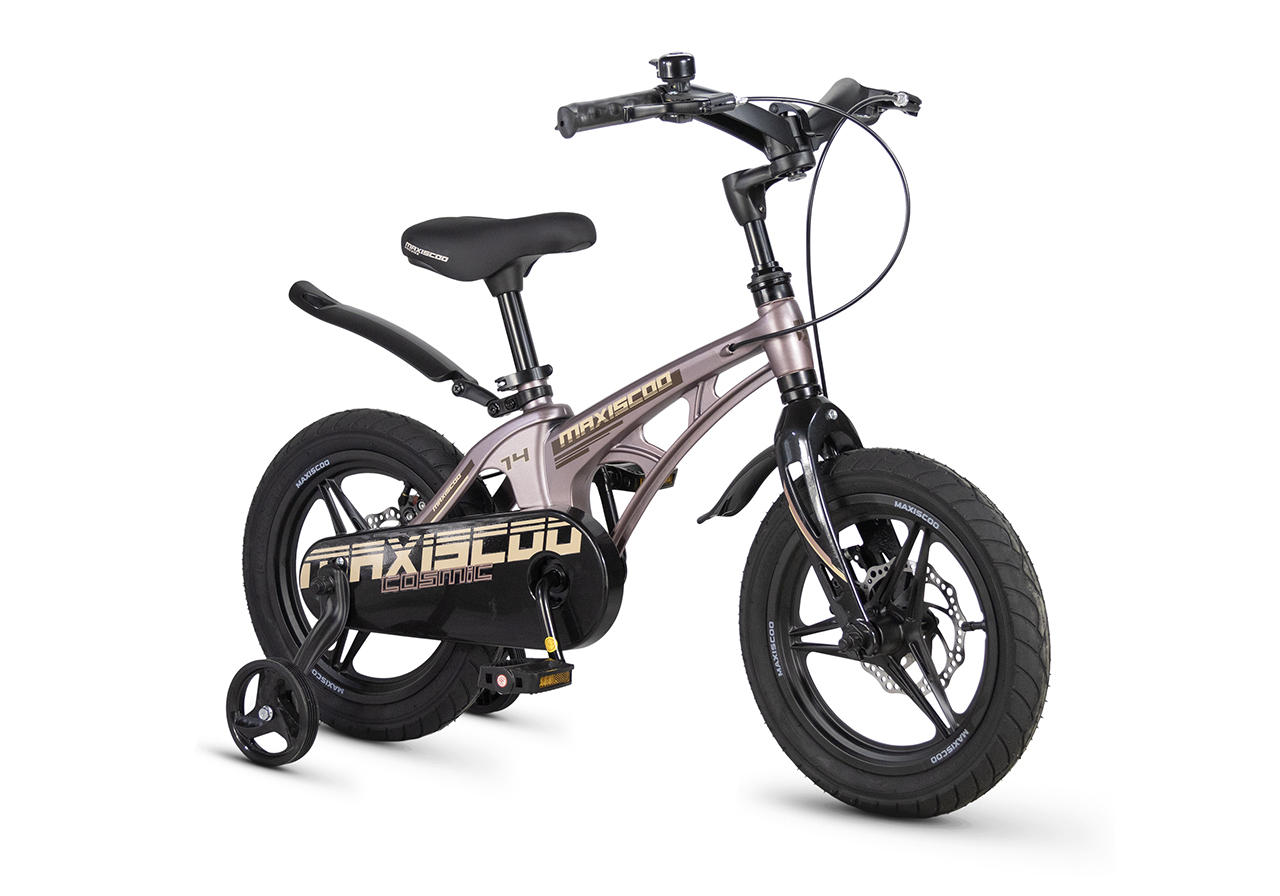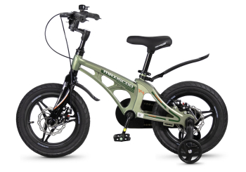 Велосипед, предназначенный для детей в возрасте от двух до четырех лет, без переключения передач. Технические особенности: легкая рама из магниевого сплава (скрытая проводка, прямой рулевой стакан, крепление калипера IS), жесткая вилка из магниевого сплава (крепление калипера IS), литые колеса из магниевого сплава (трёхлучевые, под ниппель AV), дисковые механические тормоза (роторы 140/140 мм), полная защита цепи, съемные боковые колеса, пластиковые крылья, звонок. Максимальная нагрузка - до 40 кг. Подходит для обучения и прогулочного катания в городских условиях. Диаметр колес - 14 дюймов. Вес - 7,6 кг.
