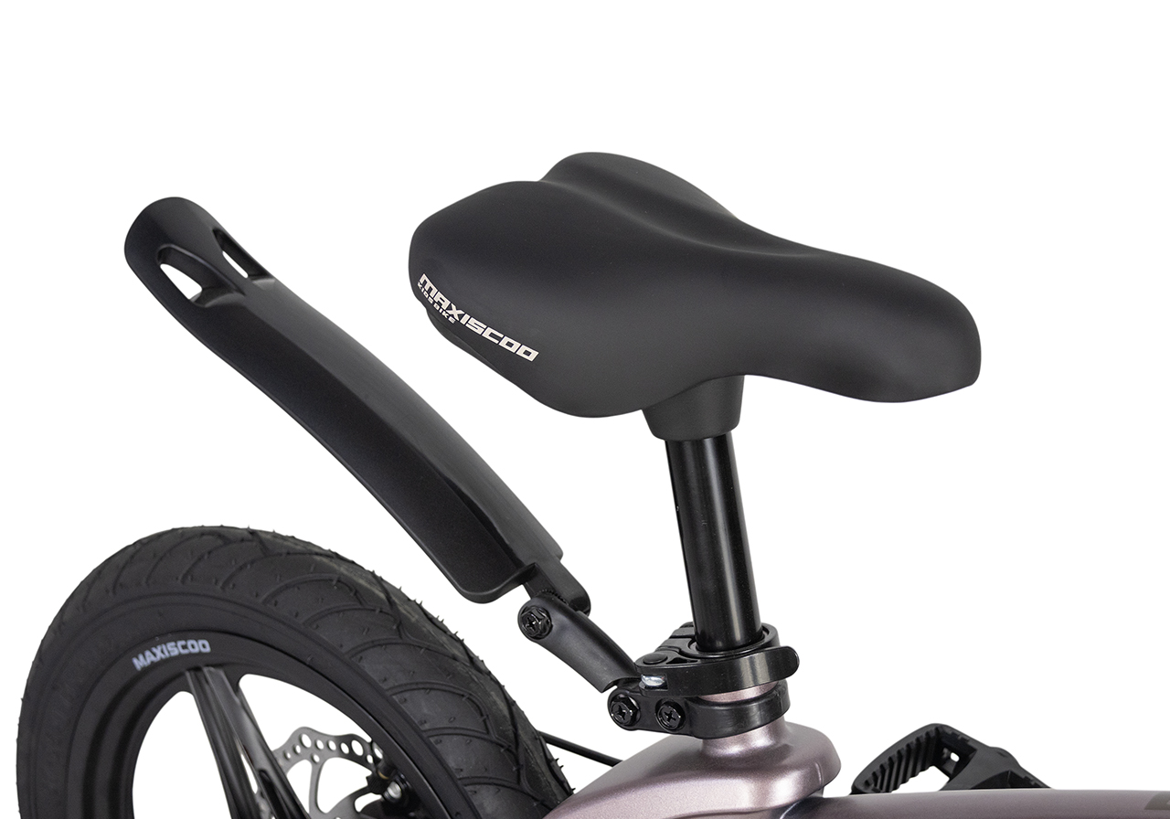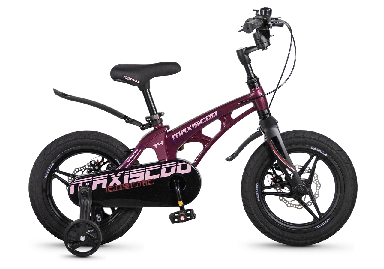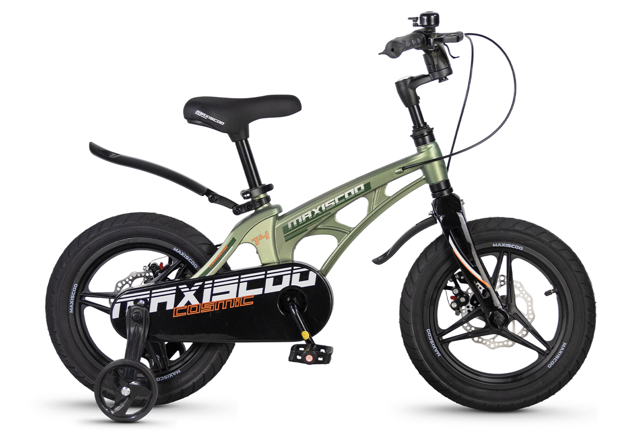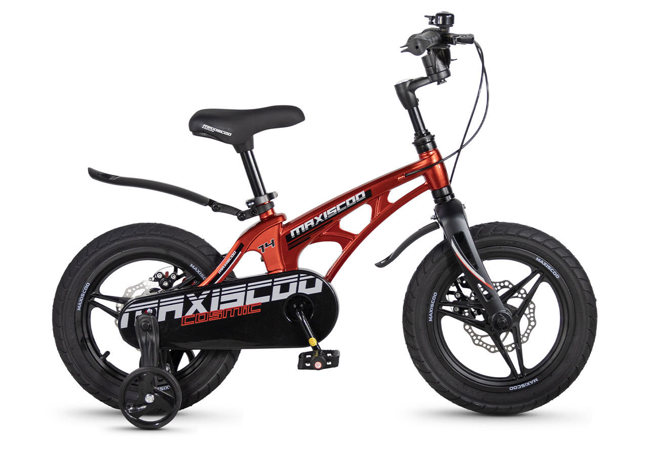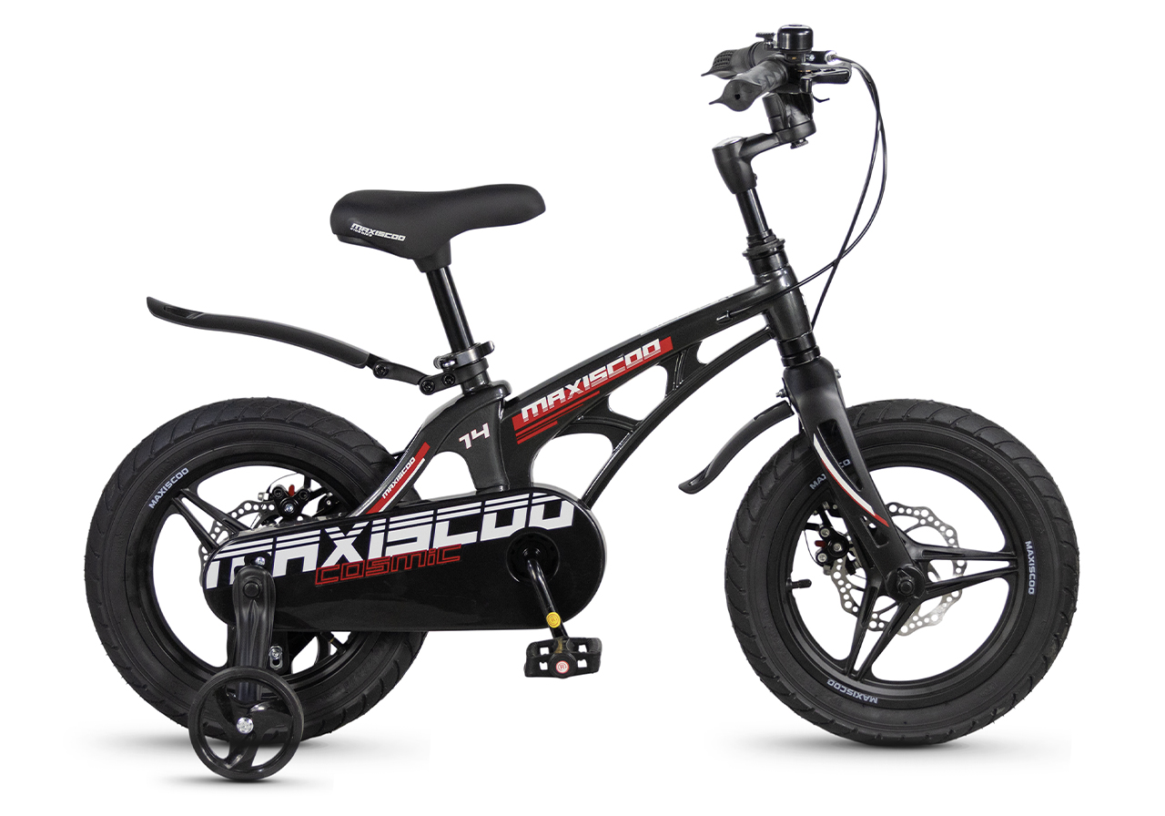 Велосипед, предназначенный для детей в возрасте от двух до четырех лет, без переключения передач. Технические особенности: легкая рама из магниевого сплава (скрытая проводка, прямой рулевой стакан, крепление калипера IS), жесткая вилка из магниевого сплава (крепление калипера IS), литые колеса из магниевого сплава (трёхлучевые, под ниппель AV), дисковые механические тормоза (роторы 140/140 мм), полная защита цепи, съемные боковые колеса, пластиковые крылья, звонок. Максимальная нагрузка - до 40 кг. Подходит для обучения и прогулочного катания в городских условиях. Диаметр колес - 14 дюймов. Вес - 7,6 кг.
