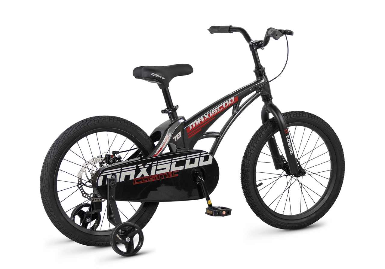 Велосипед, предназначенный для детей в возрасте от четырех до восьми лет, без переключения передач. Технические особенности: легкая рама из магниевого сплава (скрытая проводка, прямой рулевой стакан, крепление калипера IS), жесткая стальная вилка, одинарные алюминиевые обода (под ниппель AV), задний дисковый механический тормоз (ротор 140 мм), полная защита цепи, съемные боковые колеса. Максимальная нагрузка - до 40 кг. Подходит для обучения и прогулочного катания в городских условиях. Диаметр колес - 18 дюймов. Вес - 10 кг.