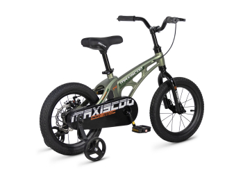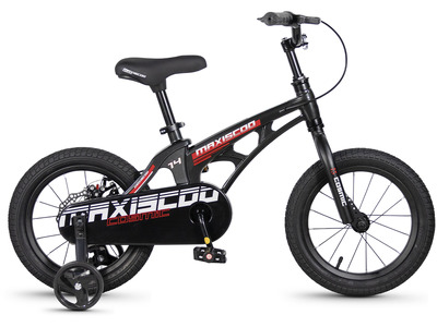 Велосипед, предназначенный для детей в возрасте от двух до четырех лет, без переключения передач. Технические особенности: легкая рама из магниевого сплава (скрытая проводка, прямой рулевой стакан, крепление калипера IS), жесткая стальная вилка, одинарные алюминиевые обода (под ниппель AV), задний дисковый механический тормоз (ротор 140 мм), полная защита цепи, съемные боковые колеса. Максимальная нагрузка - до 40 кг. Подходит для обучения и прогулочного катания в городских условиях. Диаметр колес - 14 дюймов. Вес - 7,5 кг.