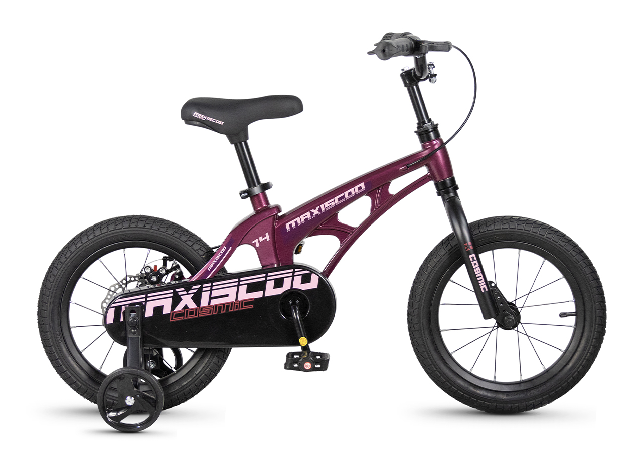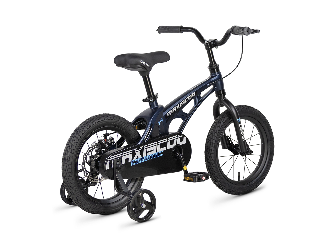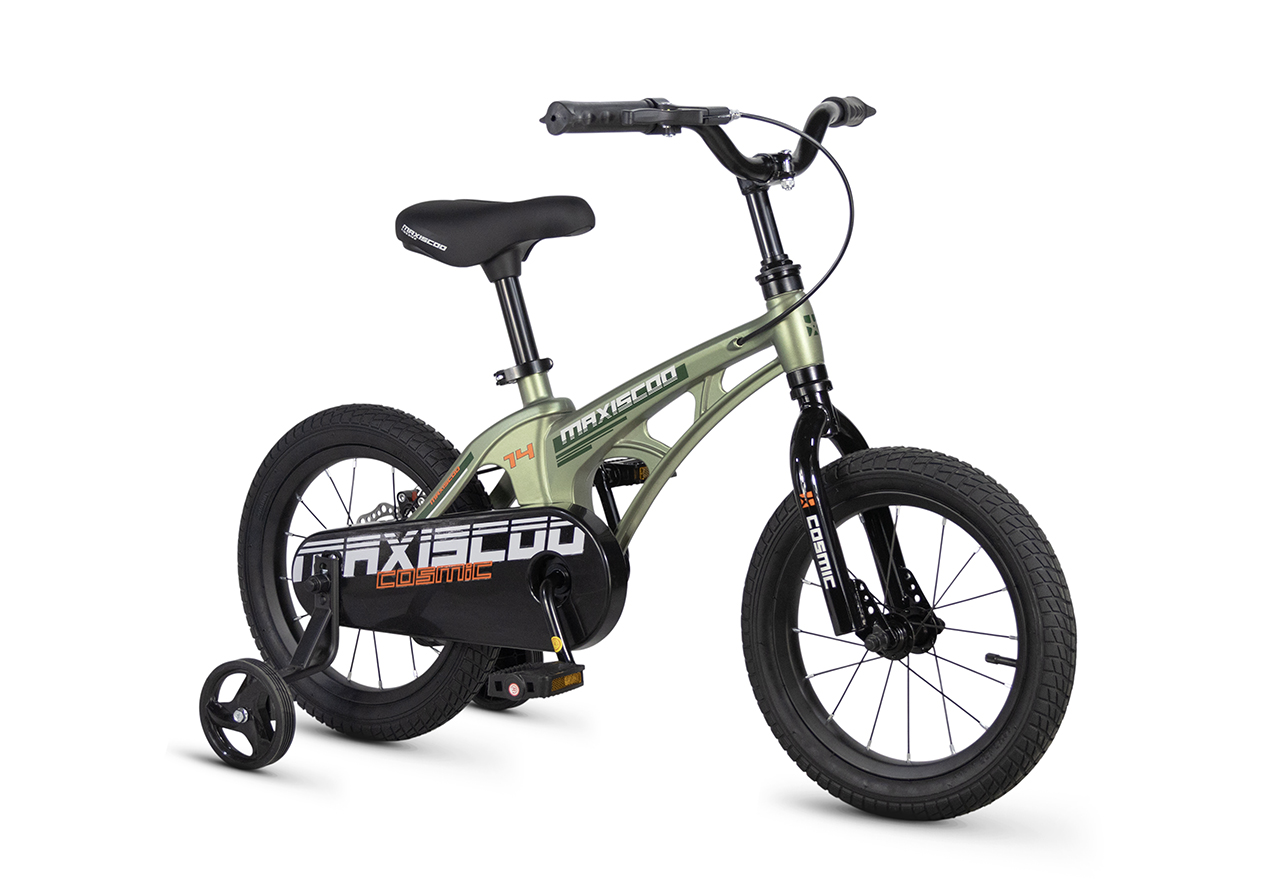 Велосипед, предназначенный для детей в возрасте от двух до четырех лет, без переключения передач. Технические особенности: легкая рама из магниевого сплава (скрытая проводка, прямой рулевой стакан, крепление калипера IS), жесткая стальная вилка, одинарные алюминиевые обода (под ниппель AV), задний дисковый механический тормоз (ротор 140 мм), полная защита цепи, съемные боковые колеса. Максимальная нагрузка - до 40 кг. Подходит для обучения и прогулочного катания в городских условиях. Диаметр колес - 14 дюймов. Вес - 7,5 кг.