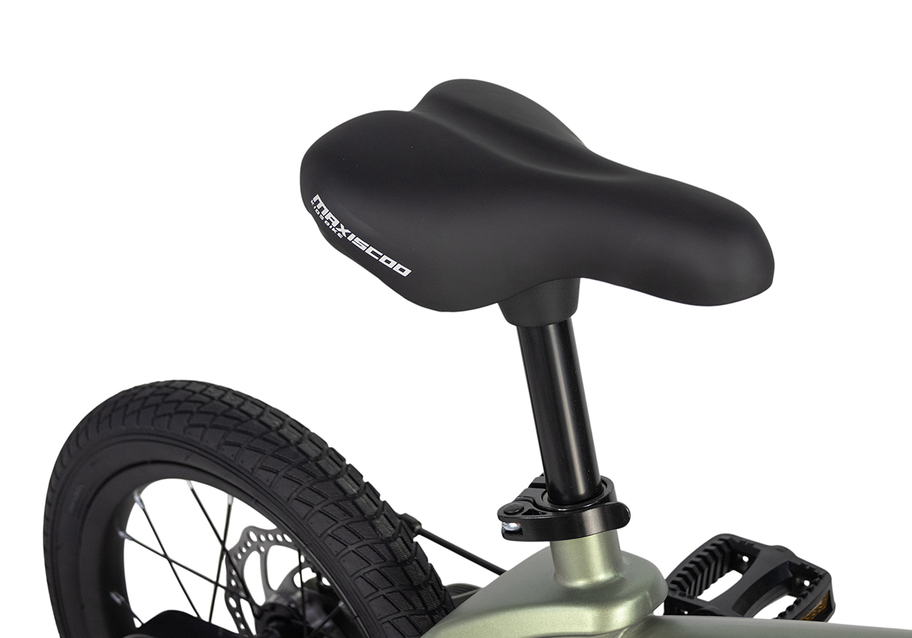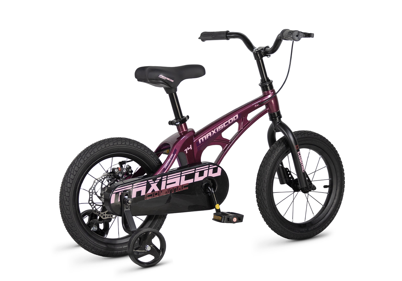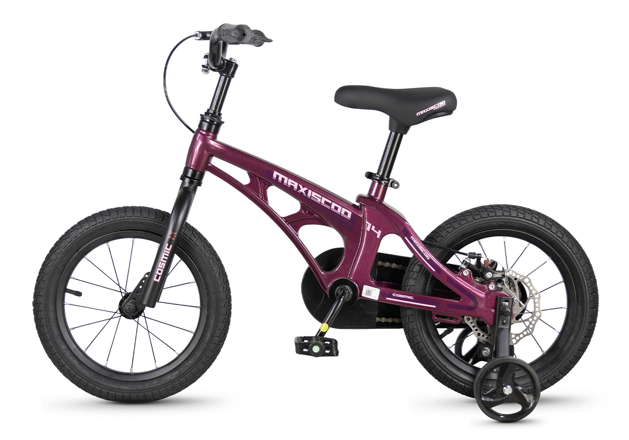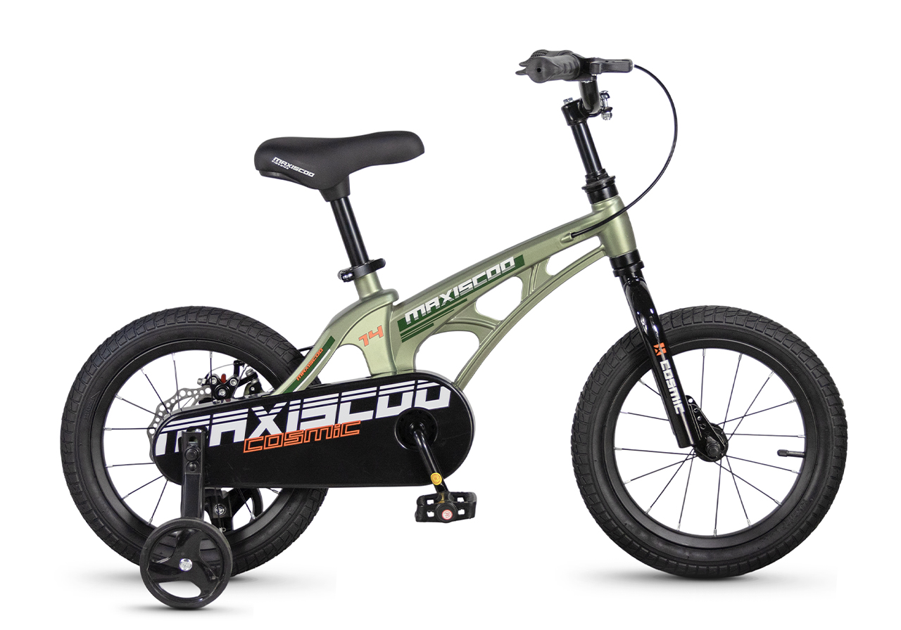 Велосипед, предназначенный для детей в возрасте от двух до четырех лет, без переключения передач. Технические особенности: легкая рама из магниевого сплава (скрытая проводка, прямой рулевой стакан, крепление калипера IS), жесткая стальная вилка, одинарные алюминиевые обода (под ниппель AV), задний дисковый механический тормоз (ротор 140 мм), полная защита цепи, съемные боковые колеса. Максимальная нагрузка - до 40 кг. Подходит для обучения и прогулочного катания в городских условиях. Диаметр колес - 14 дюймов. Вес - 7,5 кг.
