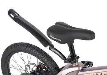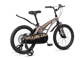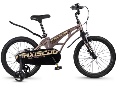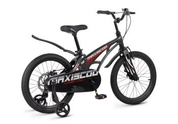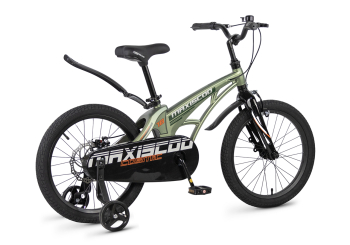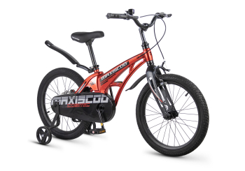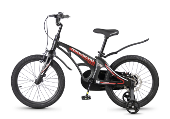 Велосипед, предназначенный для детей в возрасте от четырех до восьми лет, без переключения передач. Технические особенности: легкая рама из магниевого сплава (скрытая проводка, прямой рулевой стакан, крепление калипера IS), жесткая вилка из магниевого сплава (крепление калипера IS), одинарные алюминиевые обода (под ниппель AV), передний тормоз - ободной клещевой типа U-brake, задний тормоз - дисковый механический (ротор 140 мм), полная защита цепи, съемные боковые колеса, крылья, звонок. Максимальная нагрузка - до 40 кг. Подходит для обучения и прогулочного катания в городских условиях. Диаметр колес - 18 дюймов. Вес - 10 кг.