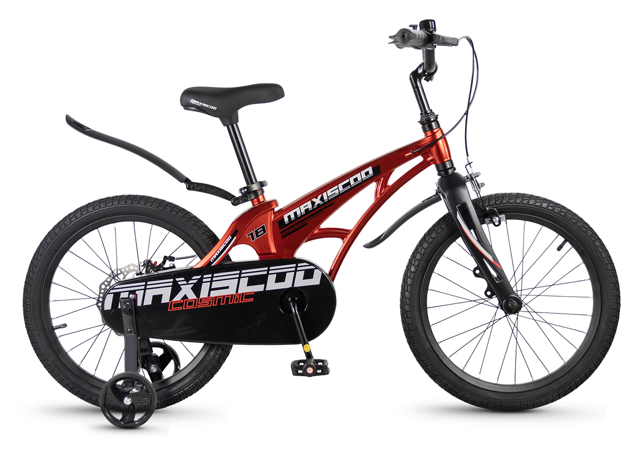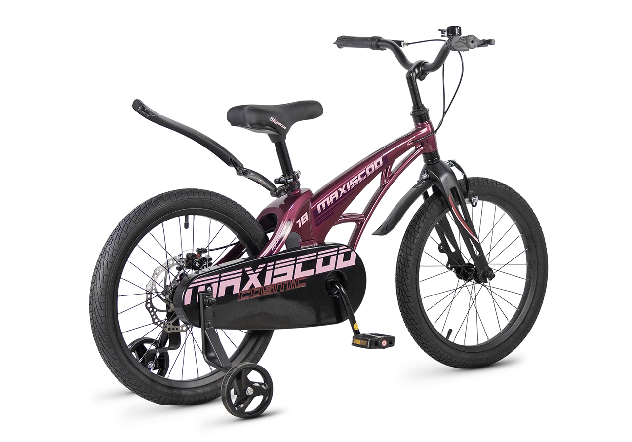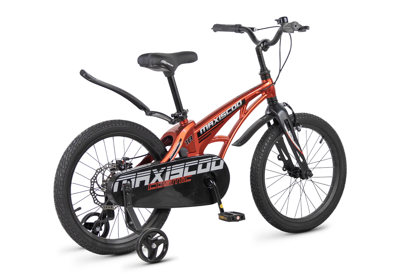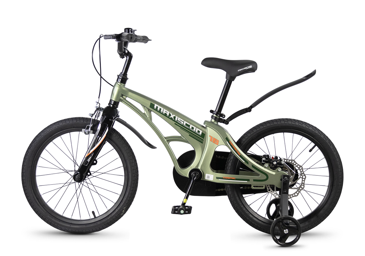 Велосипед, предназначенный для детей в возрасте от четырех до восьми лет, без переключения передач. Технические особенности: легкая рама из магниевого сплава (скрытая проводка, прямой рулевой стакан, крепление калипера IS), жесткая вилка из магниевого сплава (крепление калипера IS), одинарные алюминиевые обода (под ниппель AV), передний тормоз - ободной клещевой типа U-brake, задний тормоз - дисковый механический (ротор 140 мм), полная защита цепи, съемные боковые колеса, крылья, звонок. Максимальная нагрузка - до 40 кг. Подходит для обучения и прогулочного катания в городских условиях. Диаметр колес - 18 дюймов. Вес - 10 кг.
