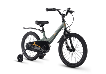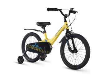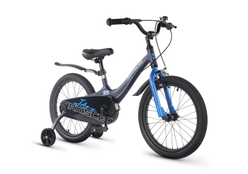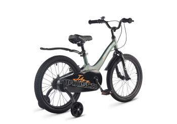 Велосипед, предназначенный для детей в возрасте от четырех до восьми лет, без переключения передач. Технические особенности: легкая рама из магниевого сплава (скрытая проводка, прямой рулевой стакан, крепление калипера IS), жесткая стальная вилка, одинарные алюминиевые обода (под ниппель AV), передний тормоз - ободной клещевой типа U-brake, задний тормоз - барабанный (роллерный), полная защита цепи, съемные боковые колеса, крылья, звонок. Максимальная нагрузка - до 40 кг. Подходит для обучения и прогулочного катания в городских условиях. Диаметр колес - 18 дюймов. Вес - 10,1 кг.