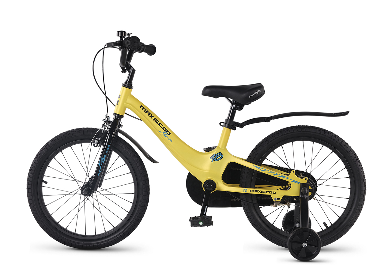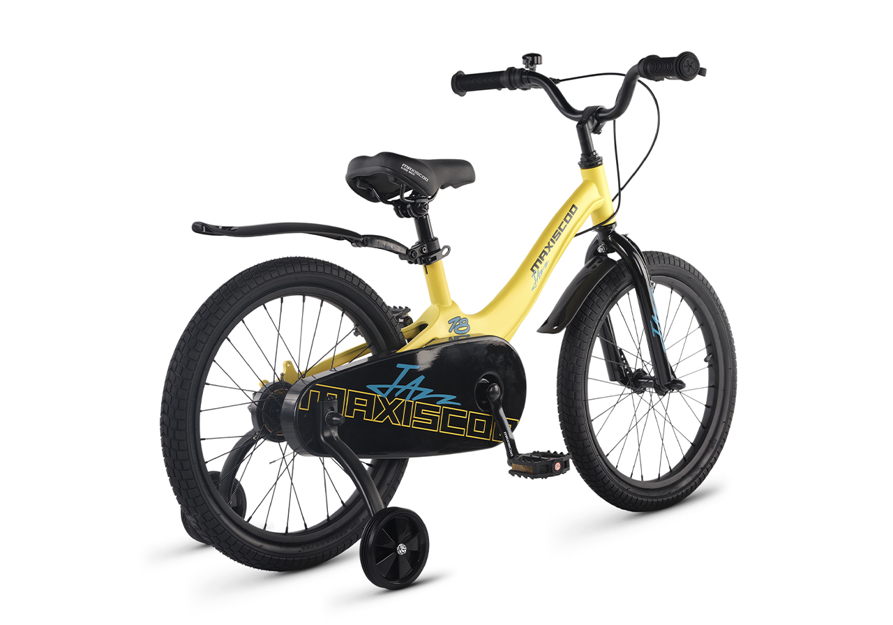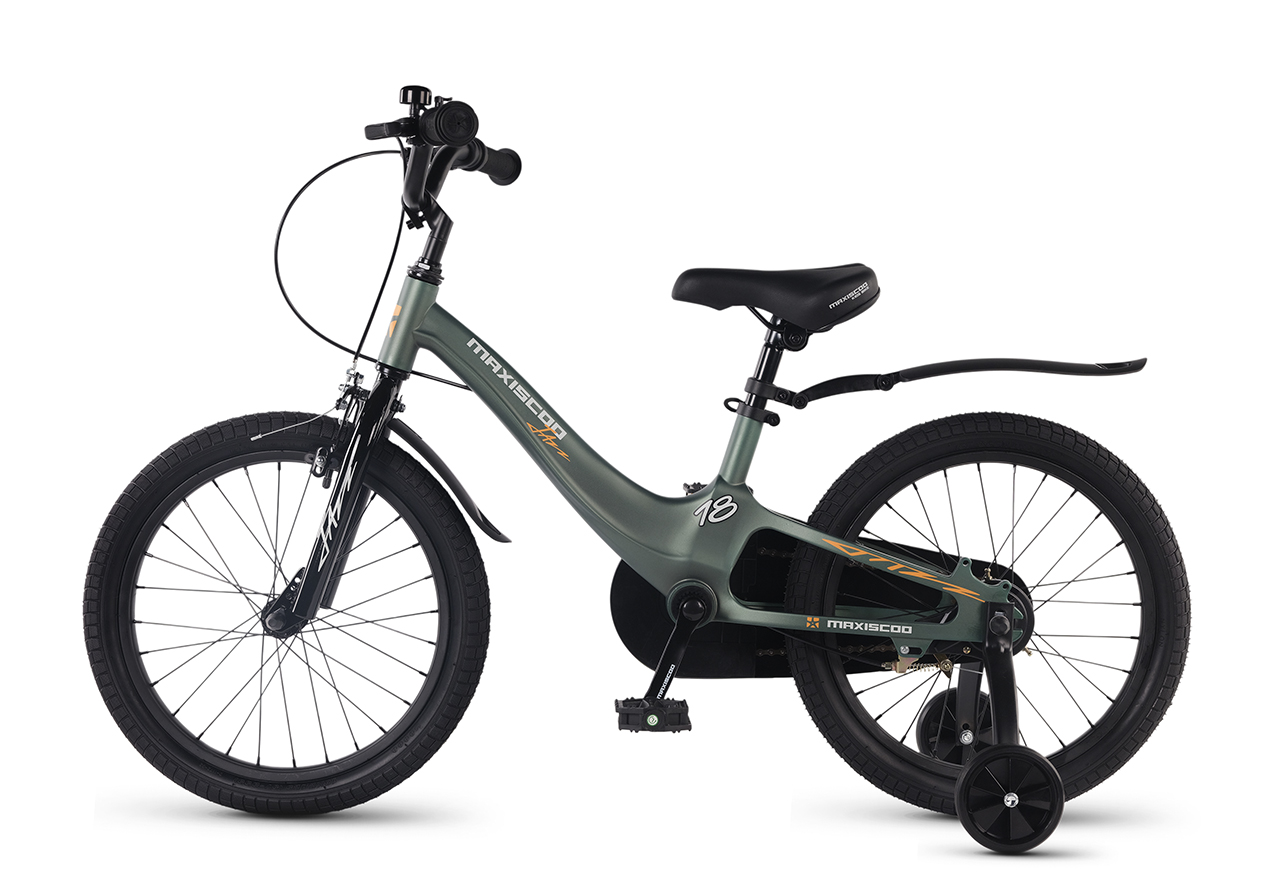 Велосипед, предназначенный для детей в возрасте от четырех до восьми лет, без переключения передач. Технические особенности: легкая рама из магниевого сплава (скрытая проводка, прямой рулевой стакан, крепление калипера IS), жесткая стальная вилка, одинарные алюминиевые обода (под ниппель AV), передний тормоз - ободной клещевой типа U-brake, задний тормоз - барабанный (роллерный), полная защита цепи, съемные боковые колеса, крылья, звонок. Максимальная нагрузка - до 40 кг. Подходит для обучения и прогулочного катания в городских условиях. Диаметр колес - 18 дюймов. Вес - 10,1 кг.