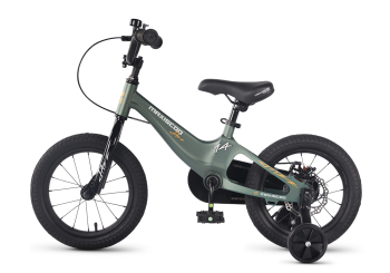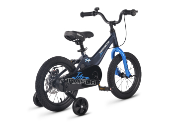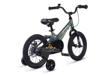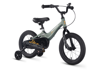 Велосипед, предназначенный для детей в возрасте от двух до четырех лет, без переключения передач. Технические особенности: легкая рама из магниевого сплава (скрытая проводка, прямой рулевой стакан, крепление калипера IS), жесткая стальная вилка, одинарные алюминиевые обода (под ниппель AV), задний дисковый механический тормоз (ротор 140 мм), полная защита цепи, съемные боковые колеса, звонок. Максимальная нагрузка - до 40 кг. Подходит для обучения и прогулочного катания в городских условиях. Диаметр колес - 14 дюймов. Вес - 8 кг.