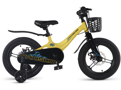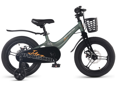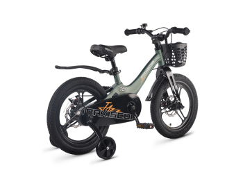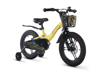 Велосипед, предназначенный для детей в возрасте от трех до шести лет, без переключения передач. Технические особенности: легкая рама из магниевого сплава (скрытая проводка, прямой рулевой стакан, крепление калипера IS), жесткая вилка из магниевого сплава (крепление калипера IS), литые колеса из магниевого сплава (трёхлучевые, под ниппель AV), дисковые механические тормоза (роторы 140/140 мм), полная защита цепи, съемные боковые колеса, пластиковые крылья, передняя корзинка, звонок. Максимальная нагрузка - до 40 кг. Подходит для обучения и прогулочного катания в городских условиях. Диаметр колес - 16 дюймов. Вес - 9,3 кг.