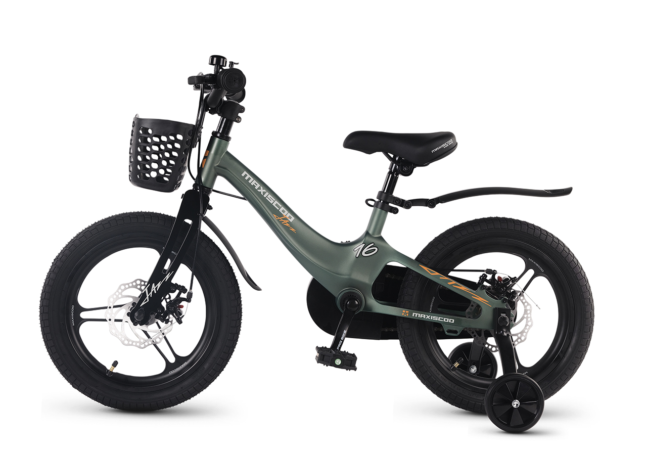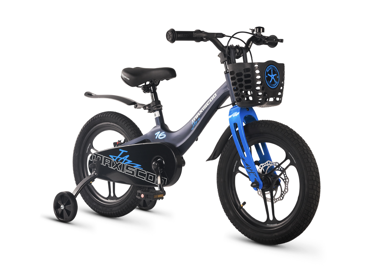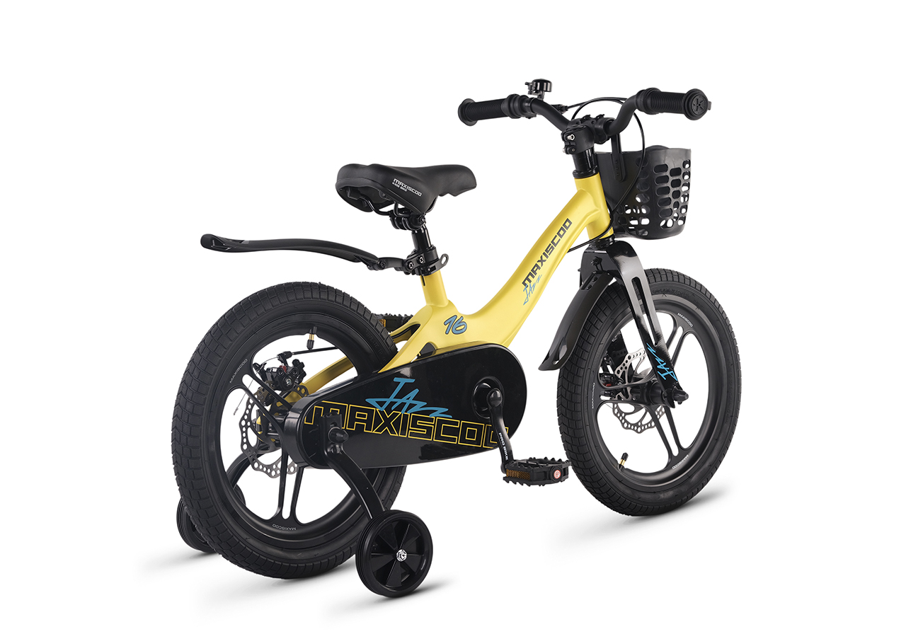Велосипед, предназначенный для детей в возрасте от трех до шести лет, без переключения передач. Технические особенности: легкая рама из магниевого сплава (скрытая проводка, прямой рулевой стакан, крепление калипера IS), жесткая вилка из магниевого сплава (крепление калипера IS), литые колеса из магниевого сплава (трёхлучевые, под ниппель AV), дисковые механические тормоза (роторы 140/140 мм), полная защита цепи, съемные боковые колеса, пластиковые крылья, передняя корзинка, звонок. Максимальная нагрузка - до 40 кг. Подходит для обучения и прогулочного катания в городских условиях. Диаметр колес - 16 дюймов. Вес - 9,3 кг.