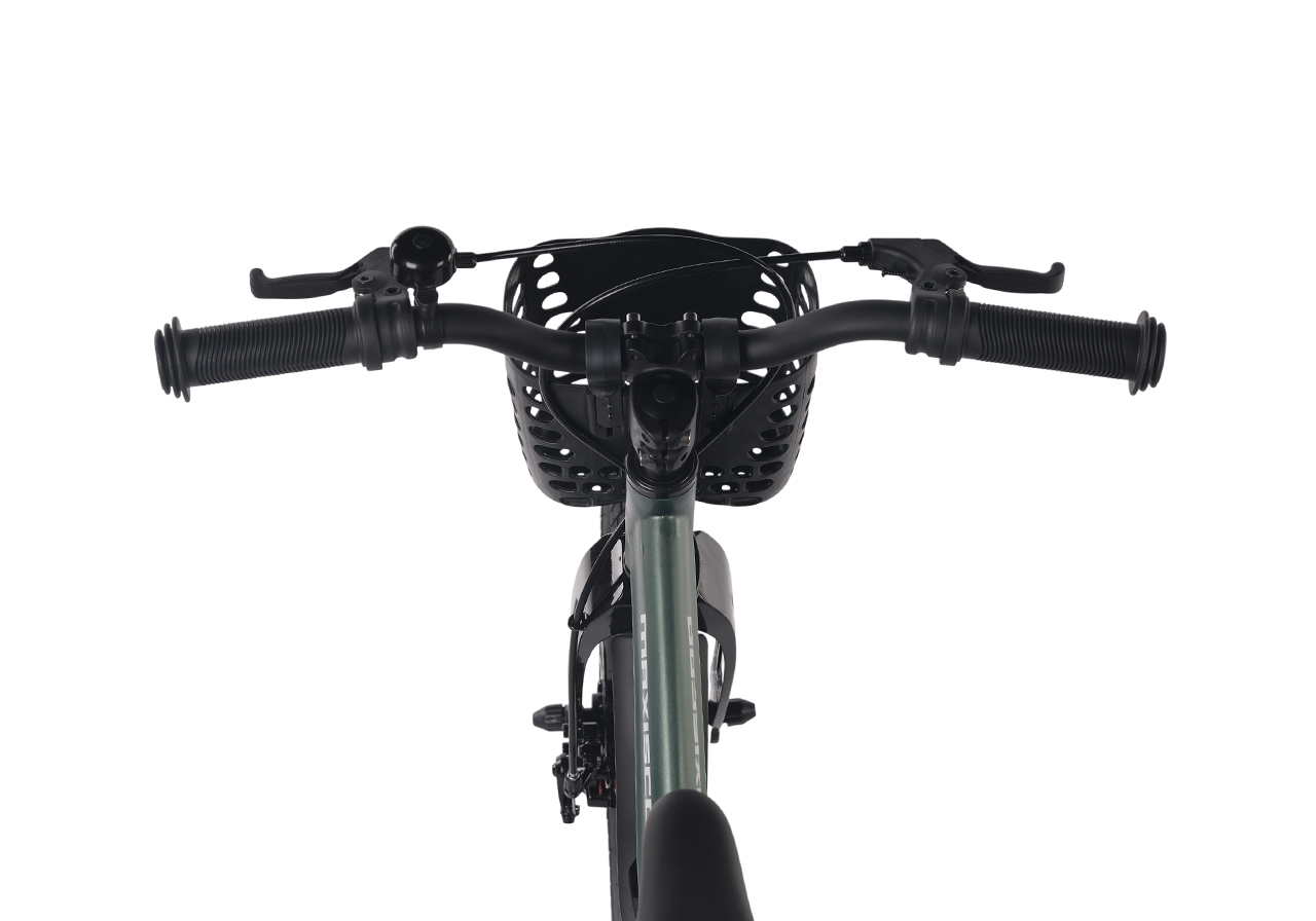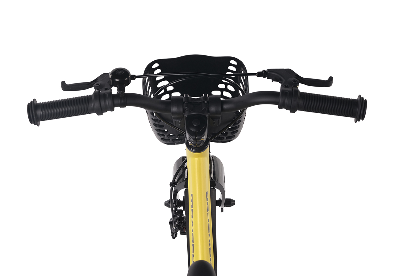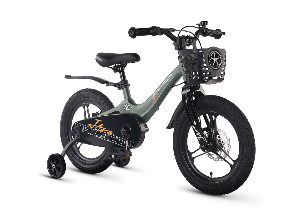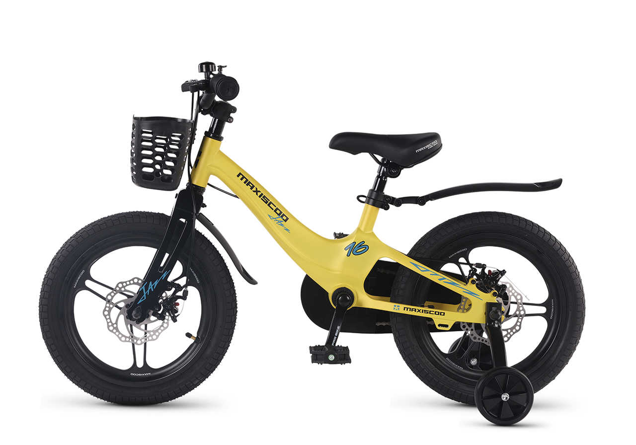 Велосипед, предназначенный для детей в возрасте от трех до шести лет, без переключения передач. Технические особенности: легкая рама из магниевого сплава (скрытая проводка, прямой рулевой стакан, крепление калипера IS), жесткая вилка из магниевого сплава (крепление калипера IS), литые колеса из магниевого сплава (трёхлучевые, под ниппель AV), дисковые механические тормоза (роторы 140/140 мм), полная защита цепи, съемные боковые колеса, пластиковые крылья, передняя корзинка, звонок. Максимальная нагрузка - до 40 кг. Подходит для обучения и прогулочного катания в городских условиях. Диаметр колес - 16 дюймов. Вес - 9,3 кг.