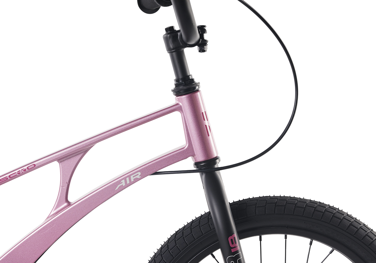 Велосипед, предназначенный для детей в возрасте от четырех до восьми лет, без переключения передач. Технические особенности: легкая рама из магниевого сплава (скрытая проводка, прямой рулевой стакан, крепление калипера IS), жесткая стальная вилка, одинарные алюминиевые обода (под ниппель AV), задний дисковый механический тормоз (ротор 140 мм), полная защита цепи, съемные боковые колеса, звонок. Максимальная нагрузка - до 40 кг. Подходит для обучения и прогулочного катания в городских условиях. Диаметр колес - 18 дюймов. Вес - 9,5 кг.