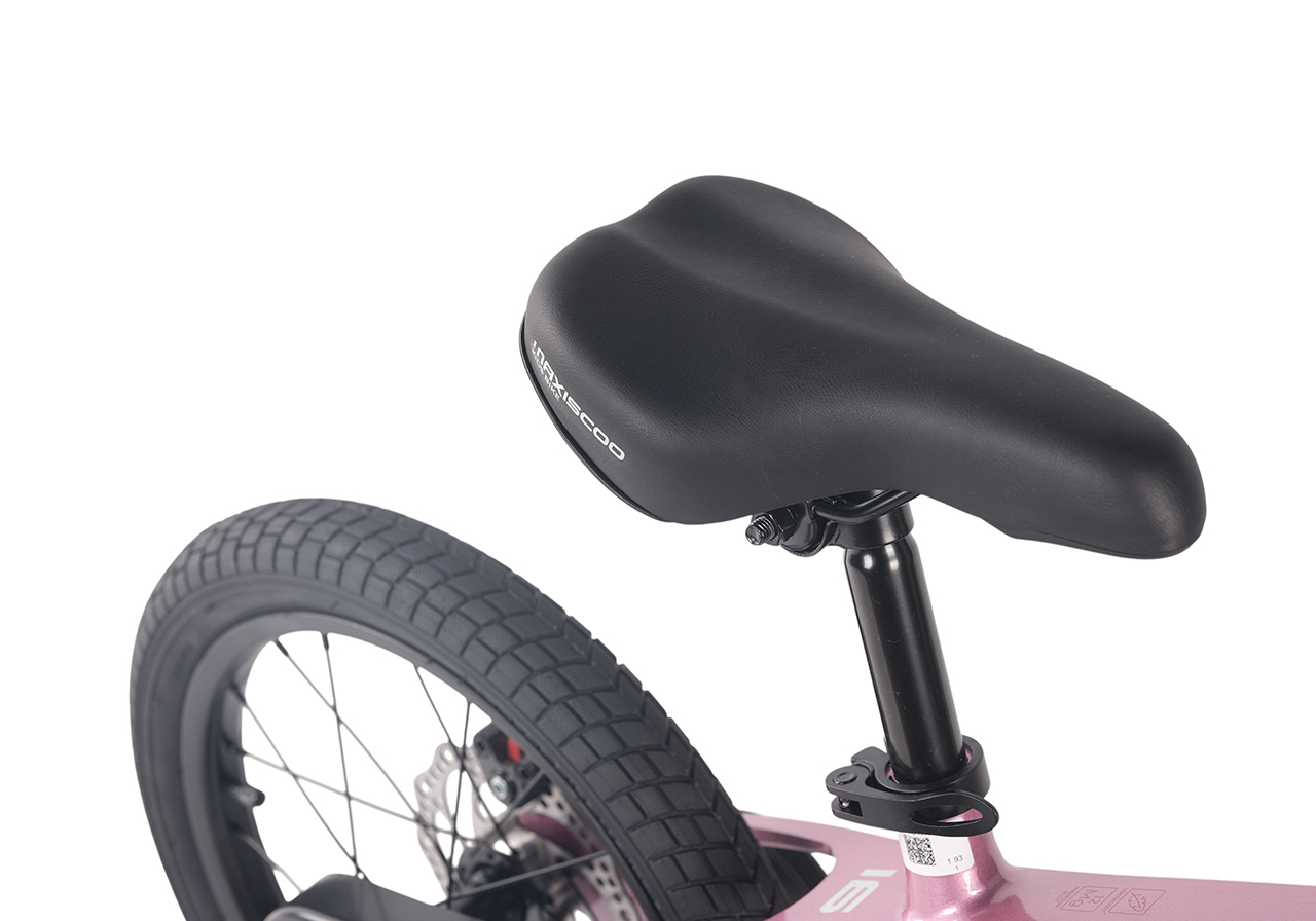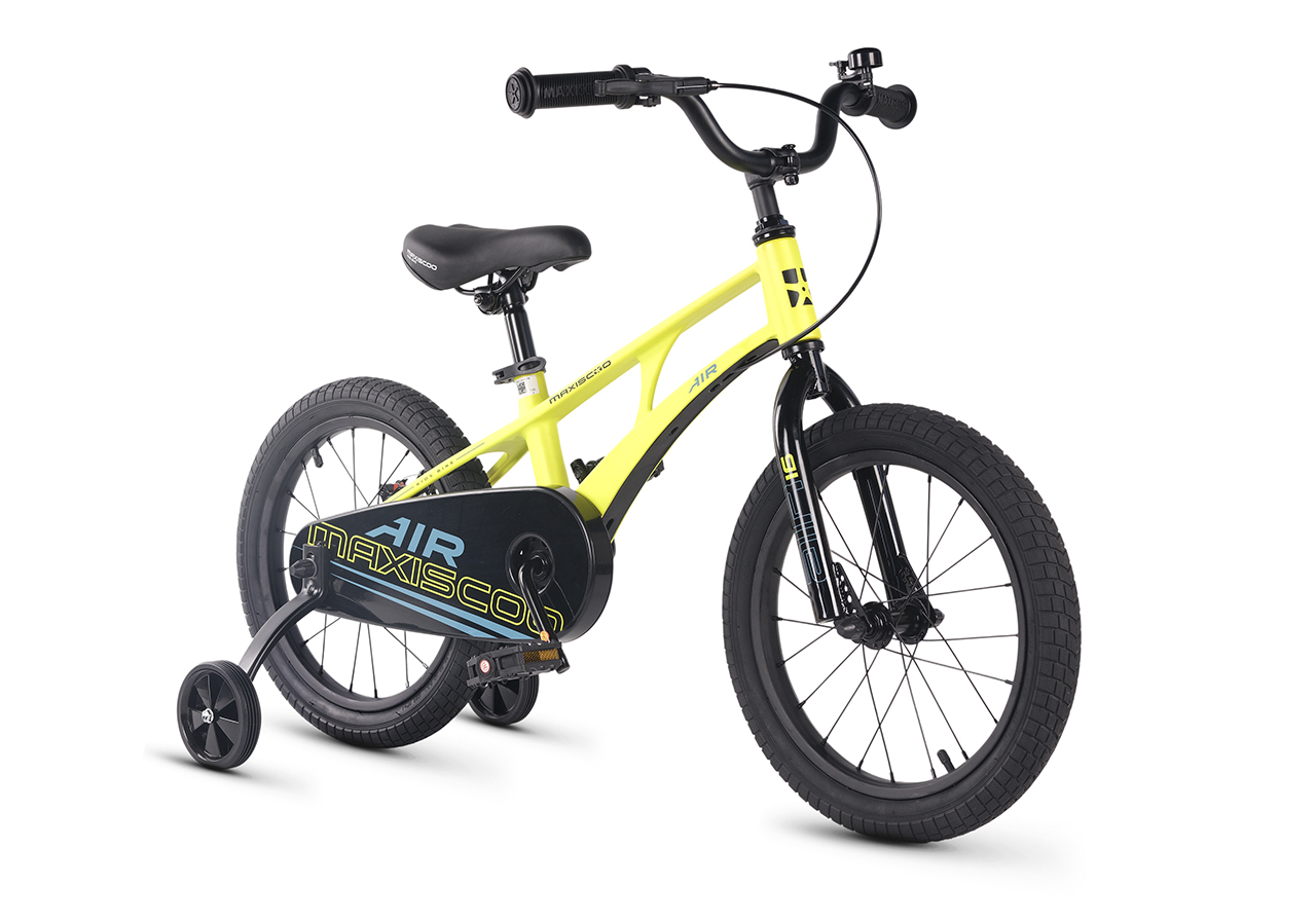 Велосипед, предназначенный для детей в возрасте от трех до шести лет, без переключения передач. Технические особенности: легкая рама из магниевого сплава (скрытая проводка, прямой рулевой стакан, крепление калипера IS), жесткая стальная вилка, одинарные алюминиевые обода (под ниппель AV), задний дисковый механический тормоз (ротор 140 мм), полная защита цепи, съемные боковые колеса, звонок. Максимальная нагрузка - до 40 кг. Подходит для обучения и прогулочного катания в городских условиях. Диаметр колес - 16 дюймов. Вес - 9 кг.