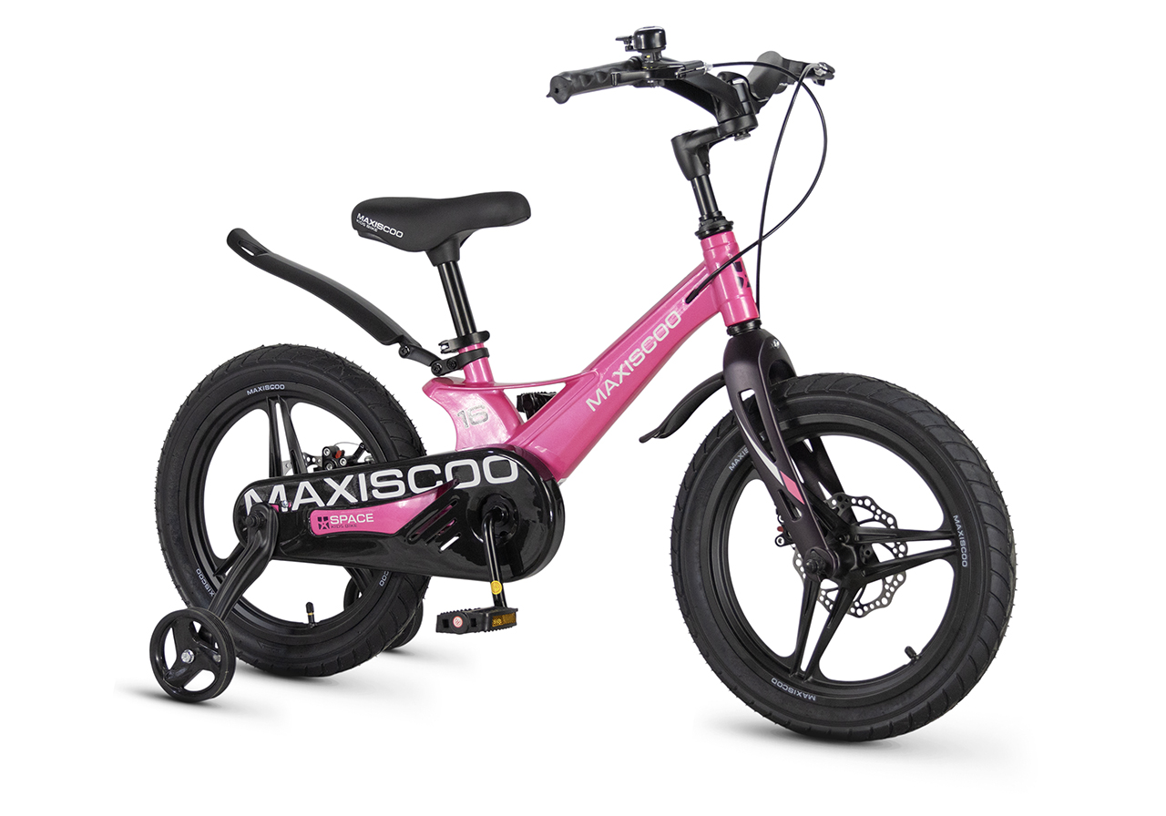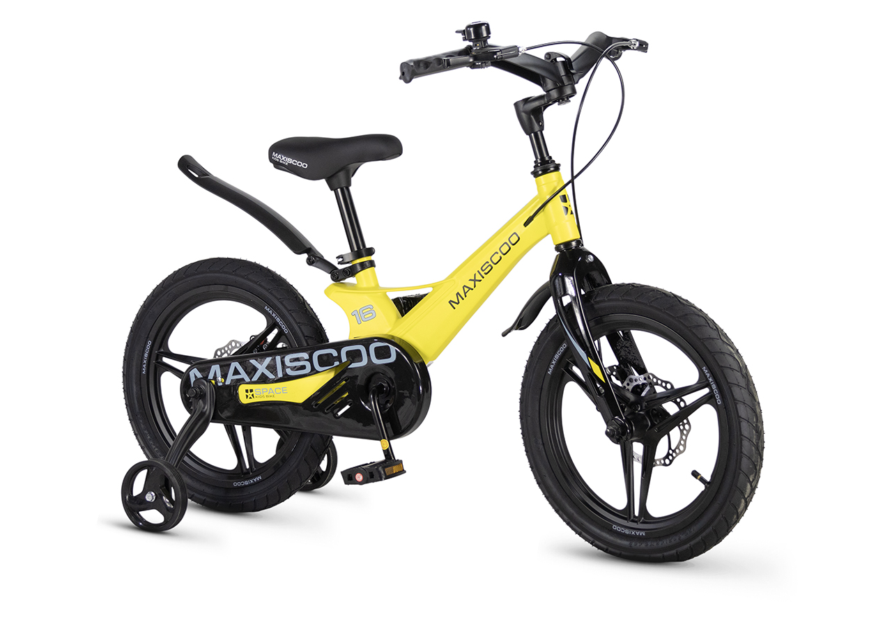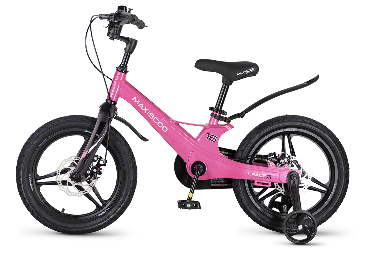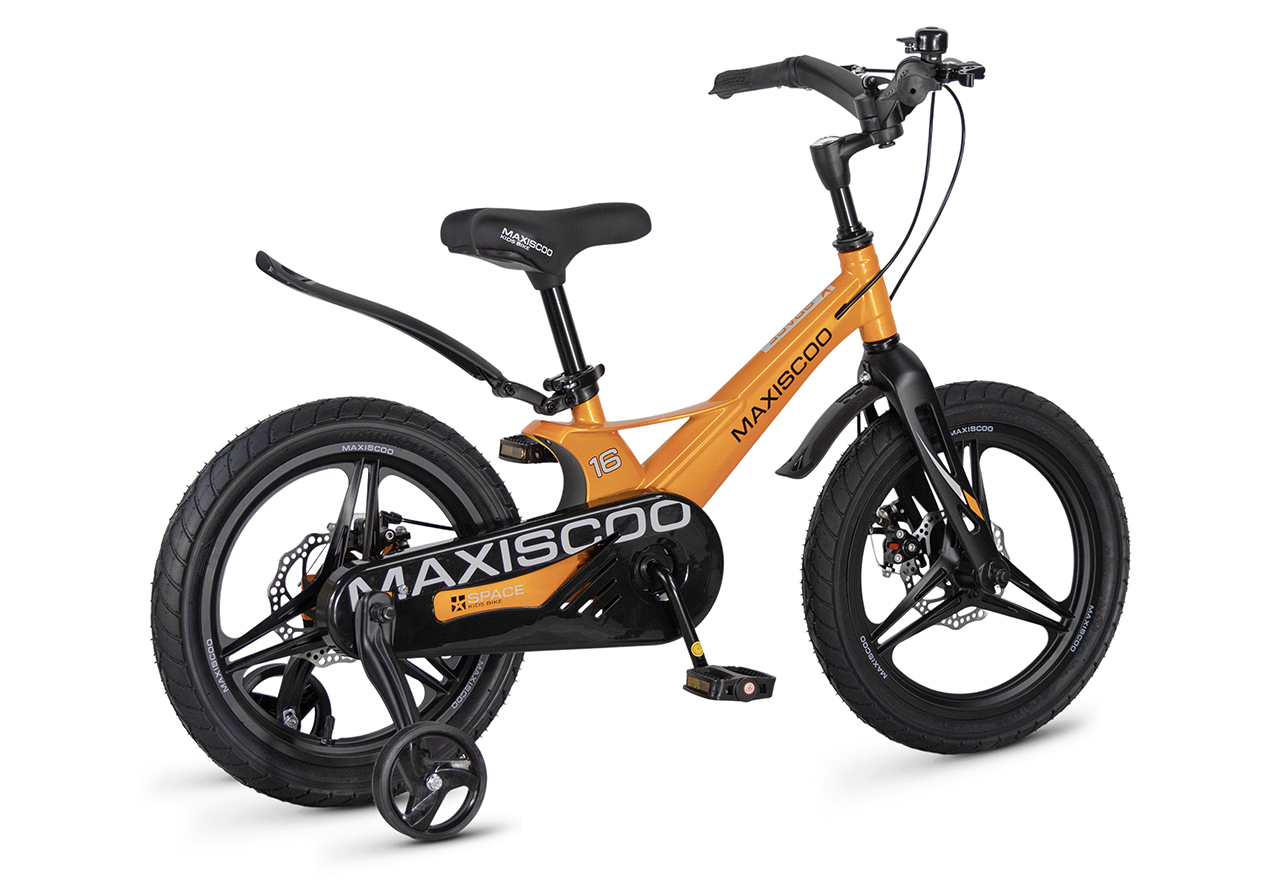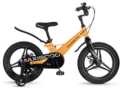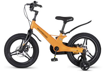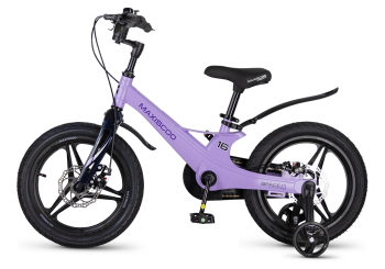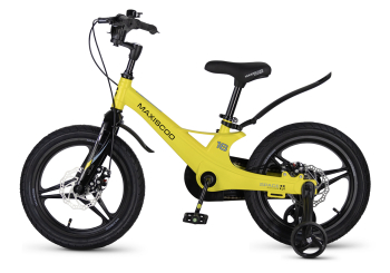 Велосипед, предназначенный для детей в возрасте от трех до шести лет, без переключения передач. Технические особенности: легкая рама из магниевого сплава (скрытая проводка, прямой рулевой стакан, крепление калипера IS), жесткая вилка из магниевого сплава (крепление калипера IS), литые колеса из магниевого сплава (трёхлучевые, под ниппель AV), дисковые механические тормоза (роторы 140/140 мм), полная защита цепи, съемные боковые колеса, пластиковые крылья, звонок. Максимальная нагрузка - до 40 кг. Подходит для обучения и прогулочного катания в городских условиях. Диаметр колес - 16 дюймов. Вес - 8,4 кг.