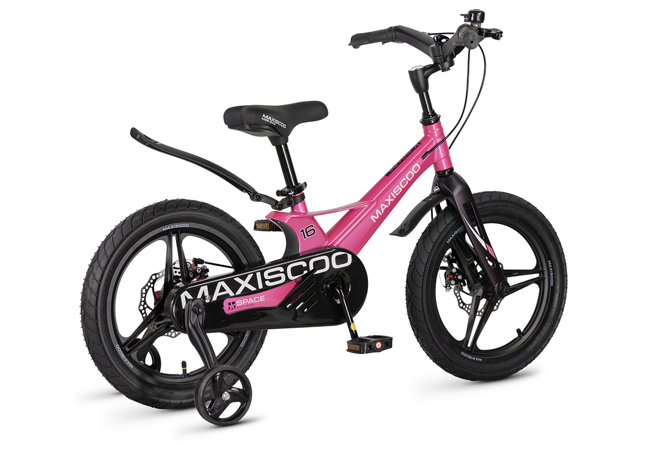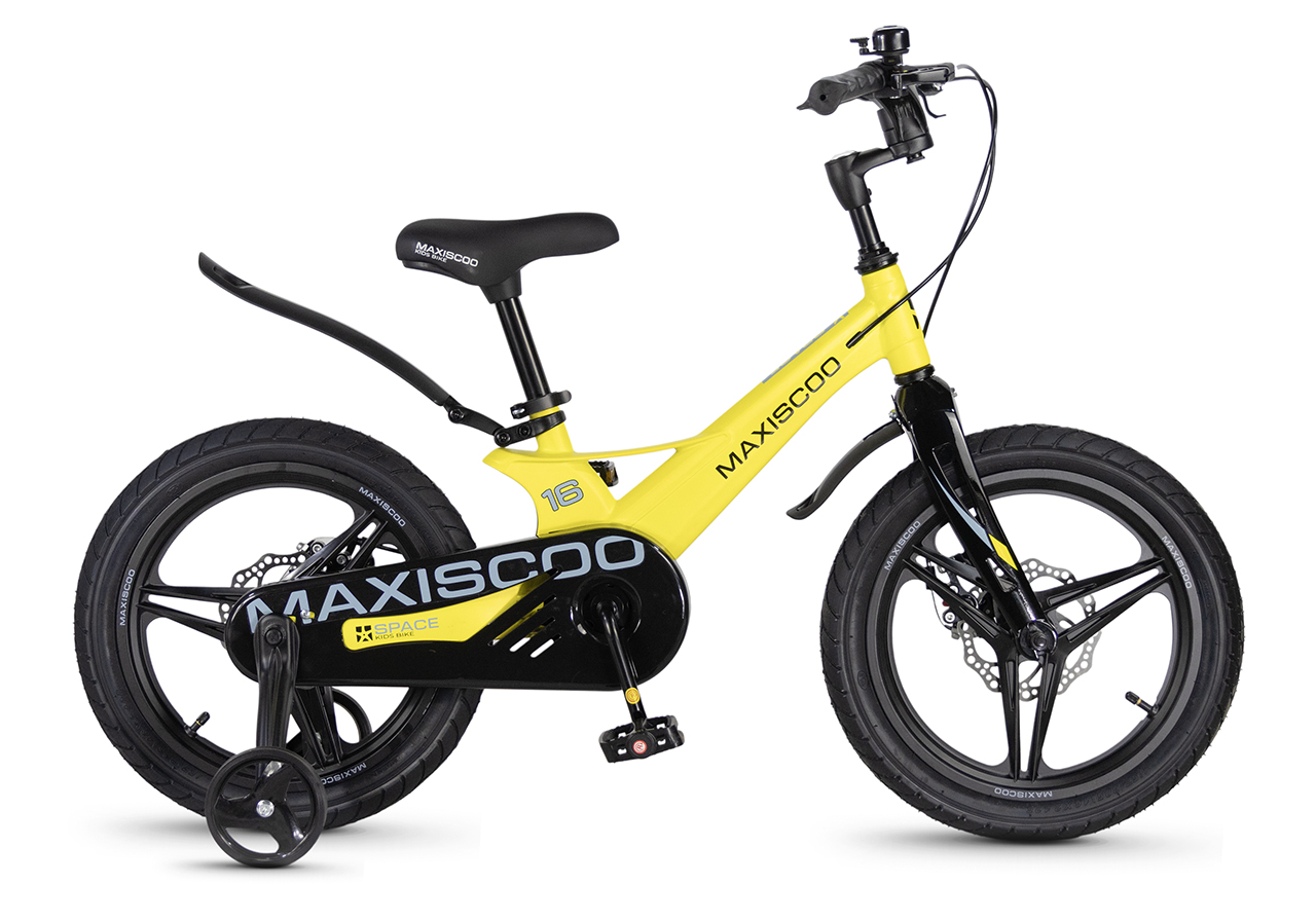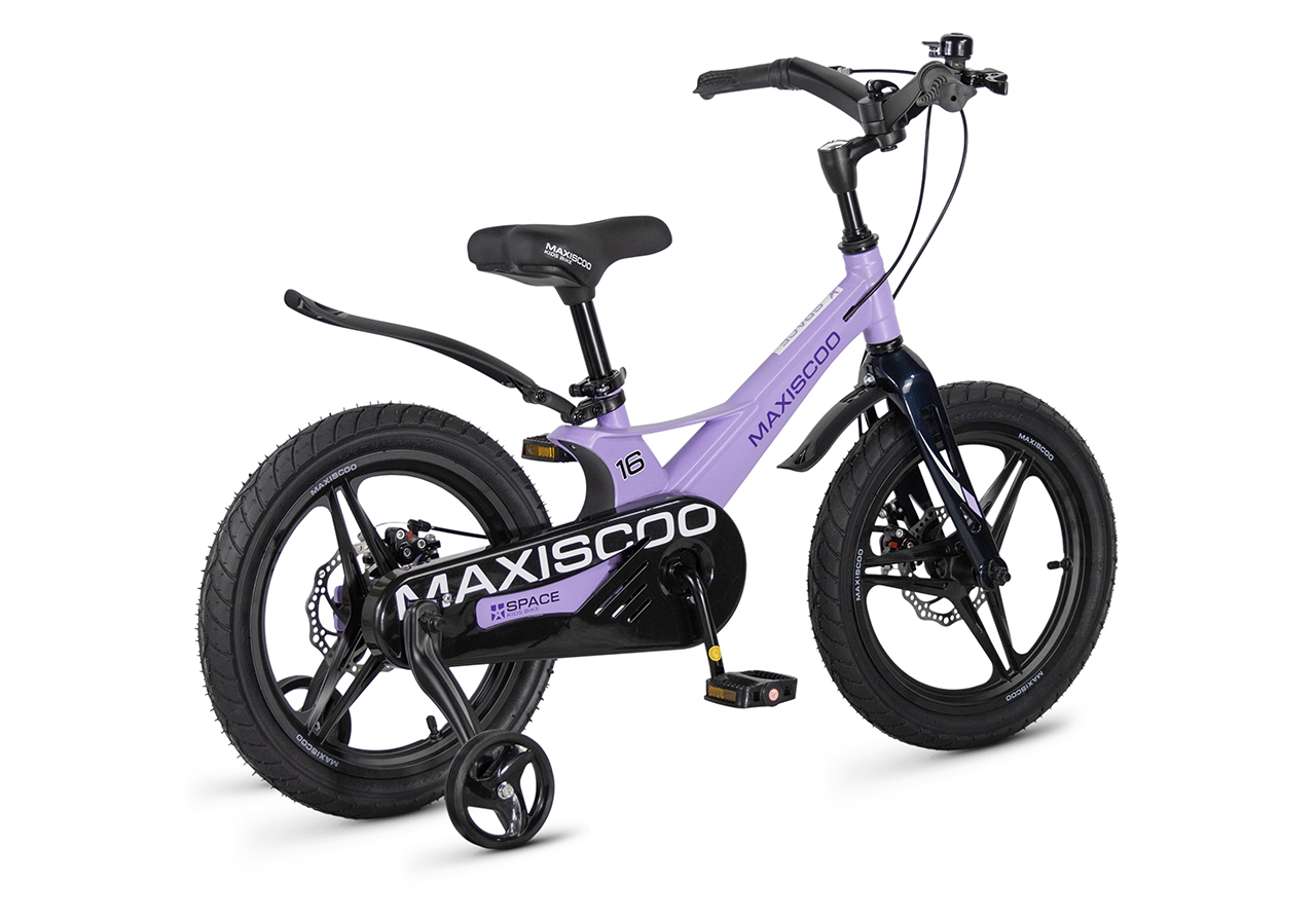 Велосипед, предназначенный для детей в возрасте от трех до шести лет, без переключения передач. Технические особенности: легкая рама из магниевого сплава (скрытая проводка, прямой рулевой стакан, крепление калипера IS), жесткая вилка из магниевого сплава (крепление калипера IS), литые колеса из магниевого сплава (трёхлучевые, под ниппель AV), дисковые механические тормоза (роторы 140/140 мм), полная защита цепи, съемные боковые колеса, пластиковые крылья, звонок. Максимальная нагрузка - до 40 кг. Подходит для обучения и прогулочного катания в городских условиях. Диаметр колес - 16 дюймов. Вес - 8,4 кг.