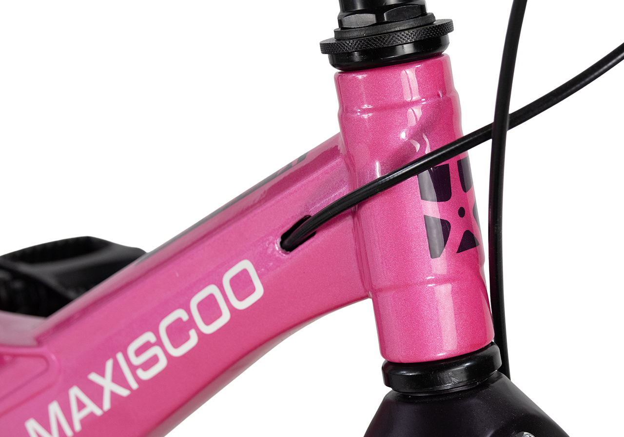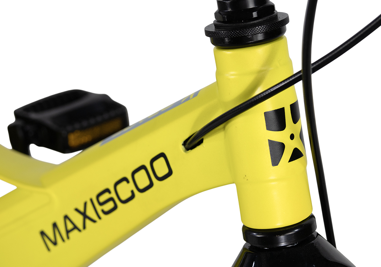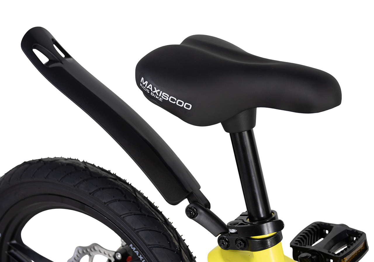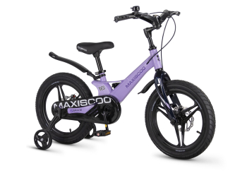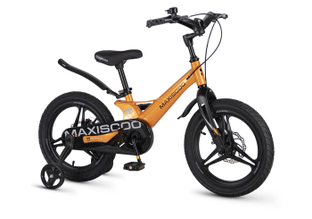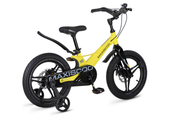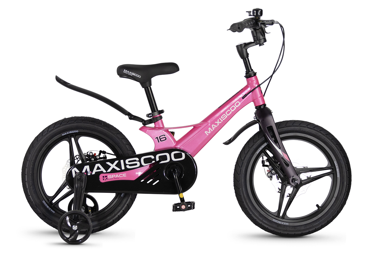 Велосипед, предназначенный для детей в возрасте от трех до шести лет, без переключения передач. Технические особенности: легкая рама из магниевого сплава (скрытая проводка, прямой рулевой стакан, крепление калипера IS), жесткая вилка из магниевого сплава (крепление калипера IS), литые колеса из магниевого сплава (трёхлучевые, под ниппель AV), дисковые механические тормоза (роторы 140/140 мм), полная защита цепи, съемные боковые колеса, пластиковые крылья, звонок. Максимальная нагрузка - до 40 кг. Подходит для обучения и прогулочного катания в городских условиях. Диаметр колес - 16 дюймов. Вес - 8,4 кг.