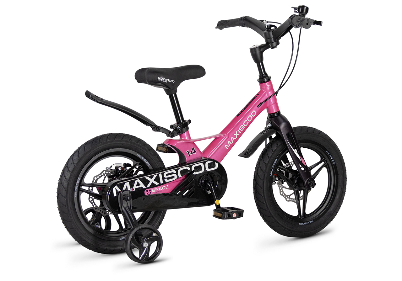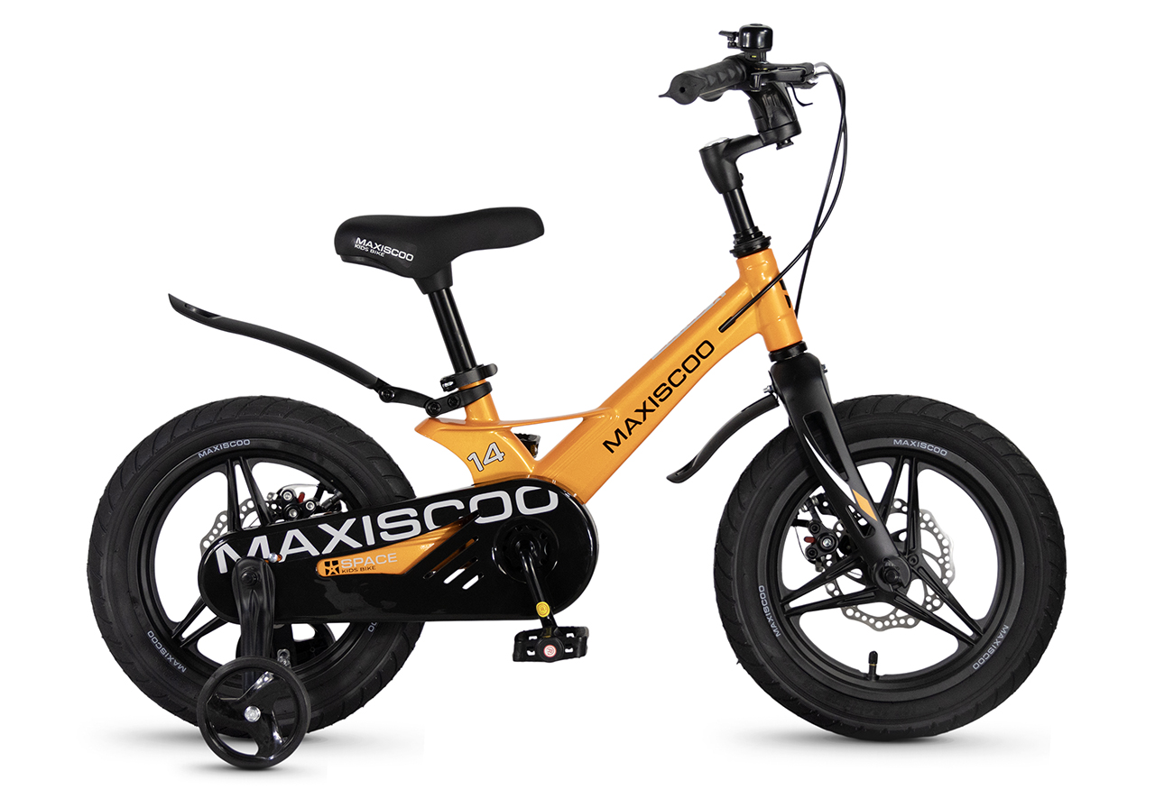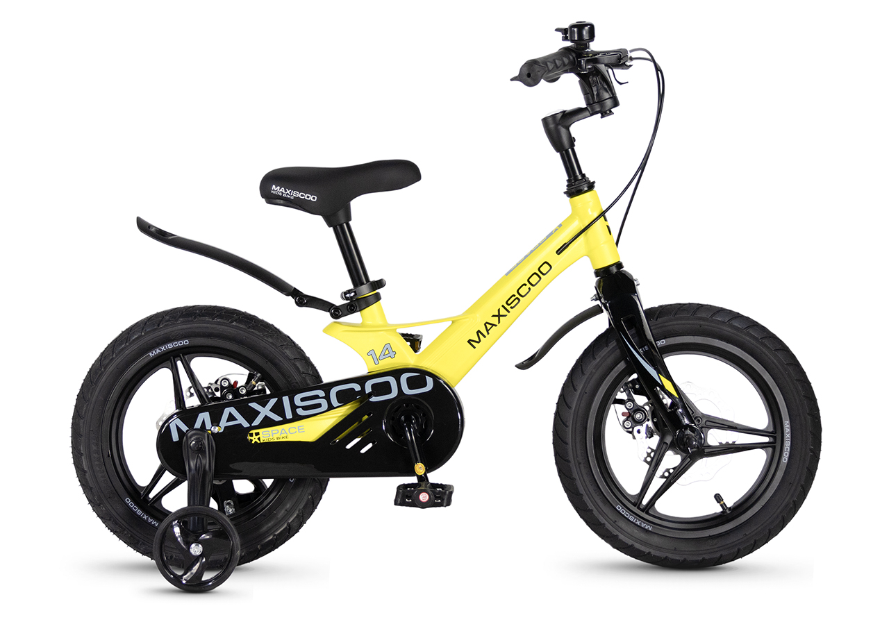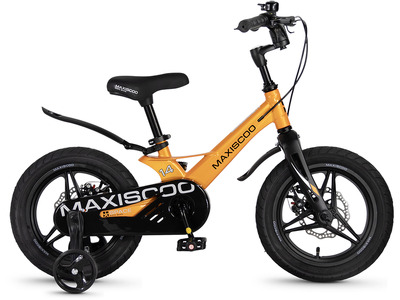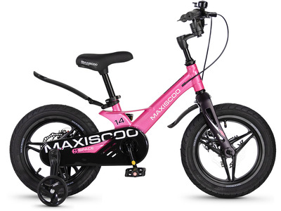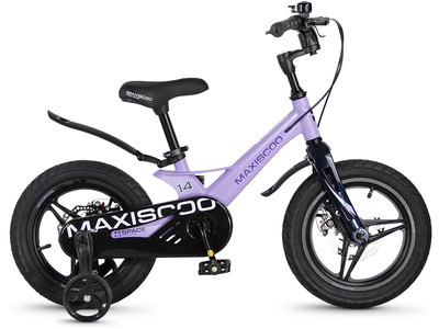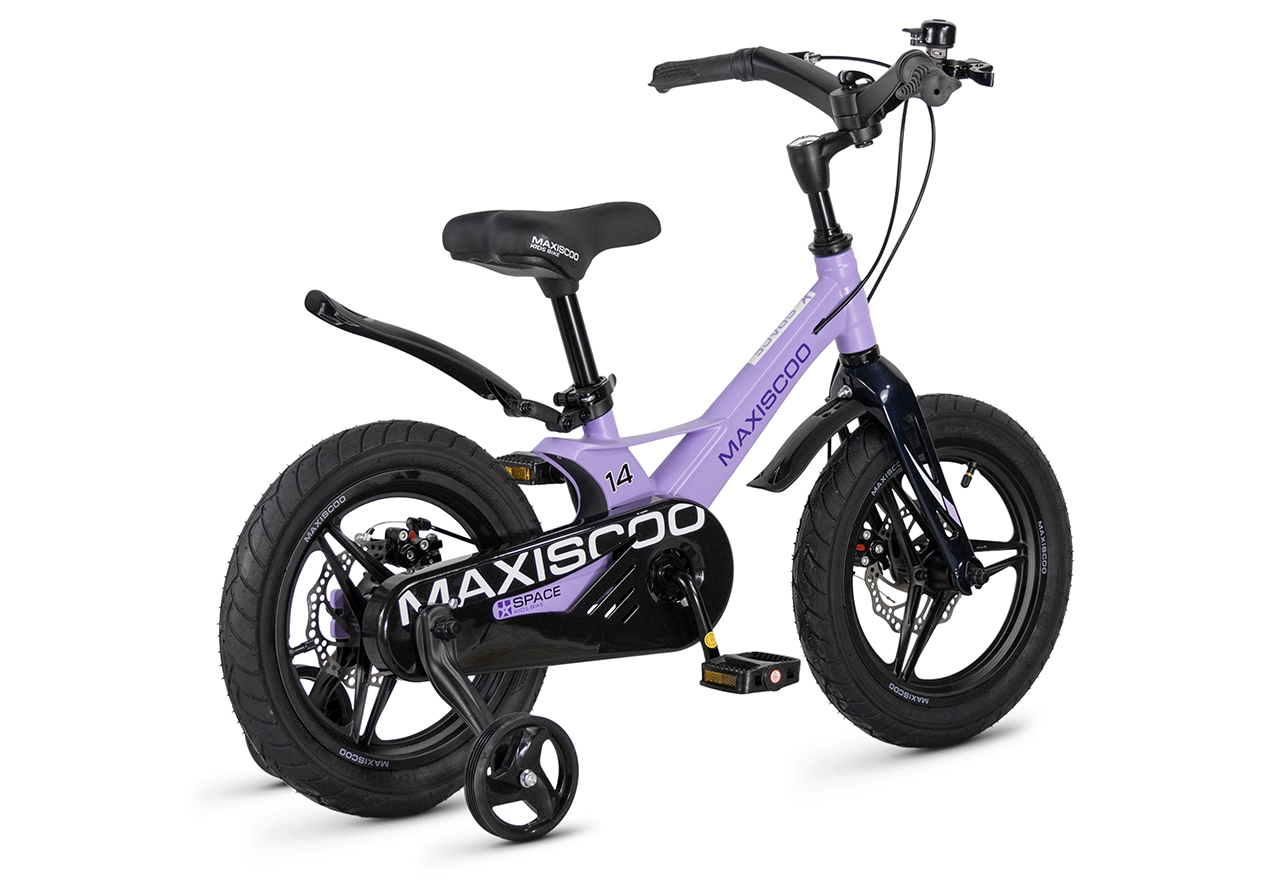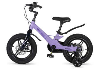 Велосипед, предназначенный для детей в возрасте от двух до четырех лет, без переключения передач. Технические особенности: легкая рама из магниевого сплава (скрытая проводка, прямой рулевой стакан, крепление калипера IS), жесткая вилка из магниевого сплава (крепление калипера IS), литые колеса из магниевого сплава (трёхлучевые, под ниппель AV), дисковые механические тормоза (роторы 140/140 мм), полная защита цепи, съемные боковые колеса, пластиковые крылья, звонок. Максимальная нагрузка - до 40 кг. Подходит для обучения и прогулочного катания в городских условиях. Диаметр колес - 14 дюймов. Вес - 7,4 кг.