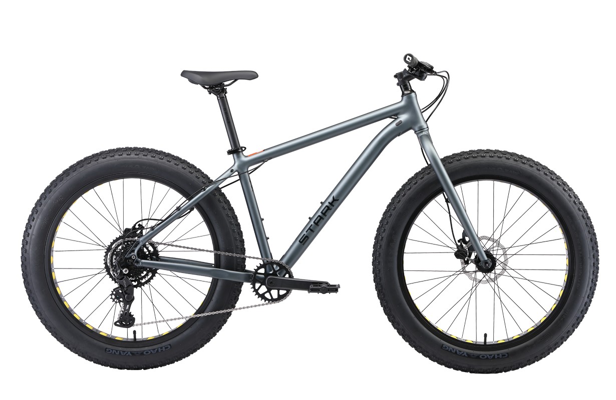 Велосипед повышенной проходимости (фэтбайк), с оборудованием высшего любительского класса Shimano, 9 скоростей. Технические особенности: алюминиевая рама (сплав AL-6061 T4-T6, бесшовная, скрытая проводка, прямой рулевой стакан, кареточный стакан BSA, съемный петух), жесткая алюминиевая вилка Grinz Nix, двойные алюминиевые обода Citron HL-82 (под ниппель AV), дисковые гидравлические тормоза Tektro HD-M275 (роторы 160/160 мм). Подходит для езды по всем типам дорожного покрытия в различных погодных условиях (дождь, снег). Диаметр колес - 26 дюймов. Вес - 15,7 кг.