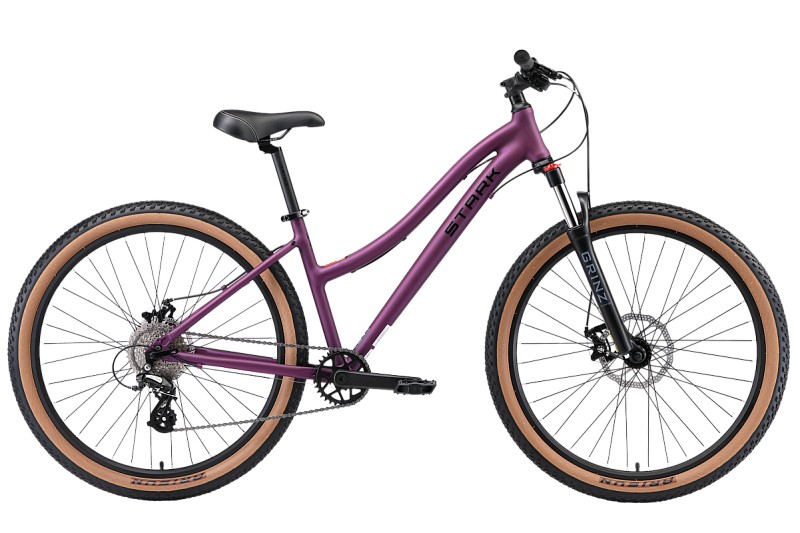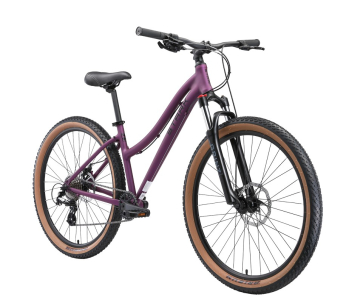 Женский горный велосипед с оборудованием начального любительского класса Shimano/Microshift, 8 скоростей. Технические особенности: алюминиевая рама (сплав AL-6061 T4-T6, бесшовная, открытая проводка, прямой рулевой стакан, кареточный стакан BSA, съемный петух), амортизационная вилка Grinz Hortus (пружинно-эластомерная, ход 100 мм, предварительная нагрузка, блокировка, крепление калипера PM), двойные алюминиевые обода Stark DA-18 (под ниппель AV), дисковые механические тормоза Tektro MD-M280 (роторы 180/160 мм). Подходит для активной езды по различным дорогам и пересеченной местности. Диаметр колес - 27,5 дюймов. Вес - 14,7 кг.