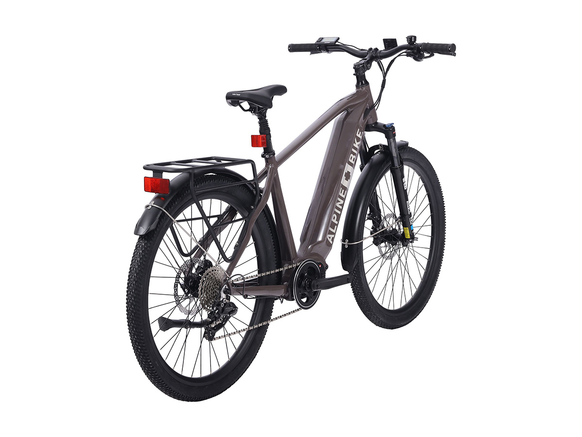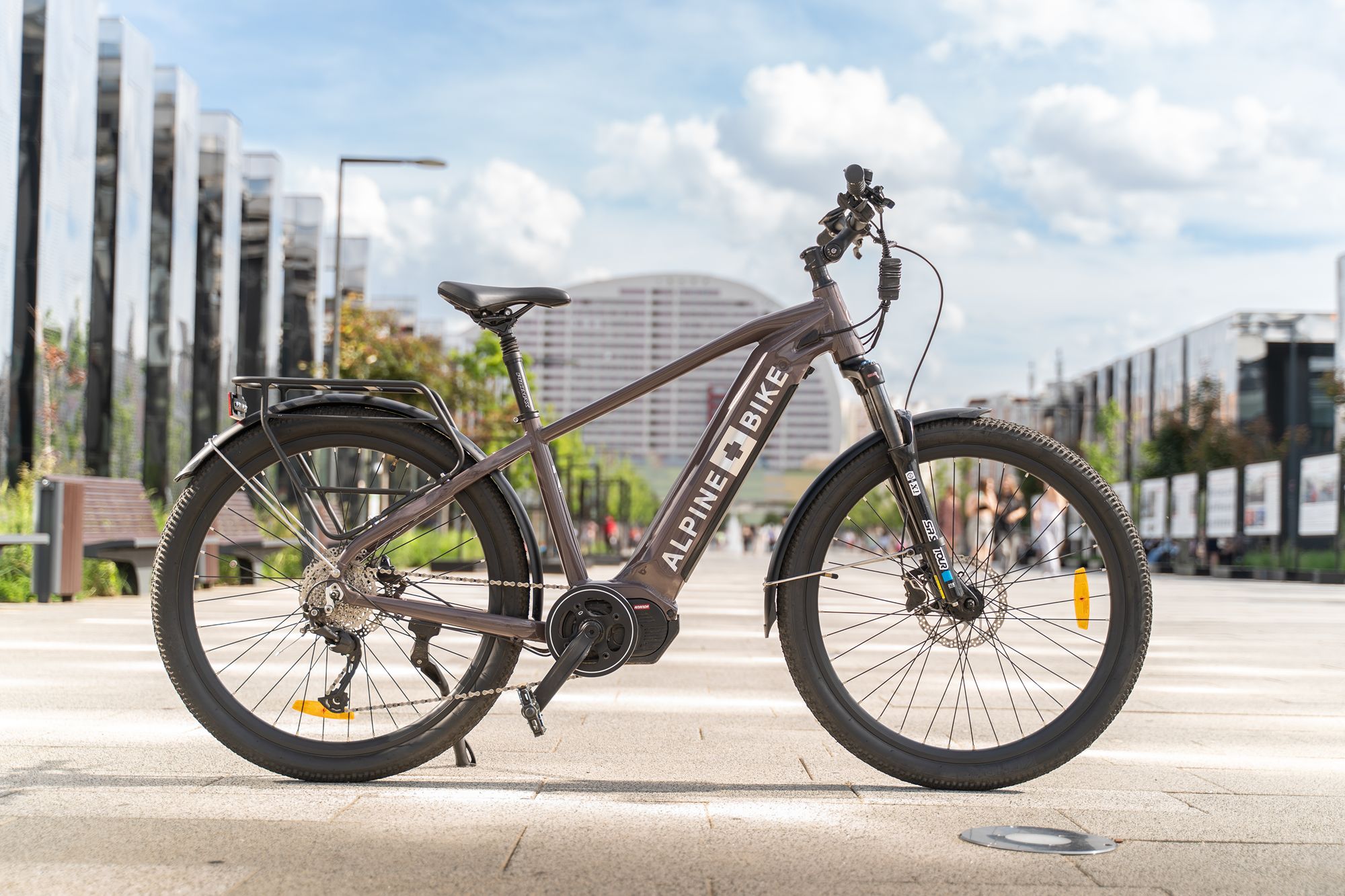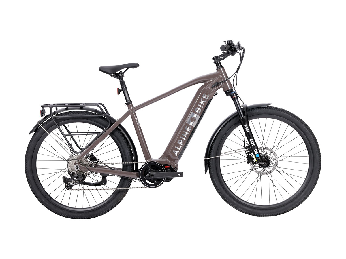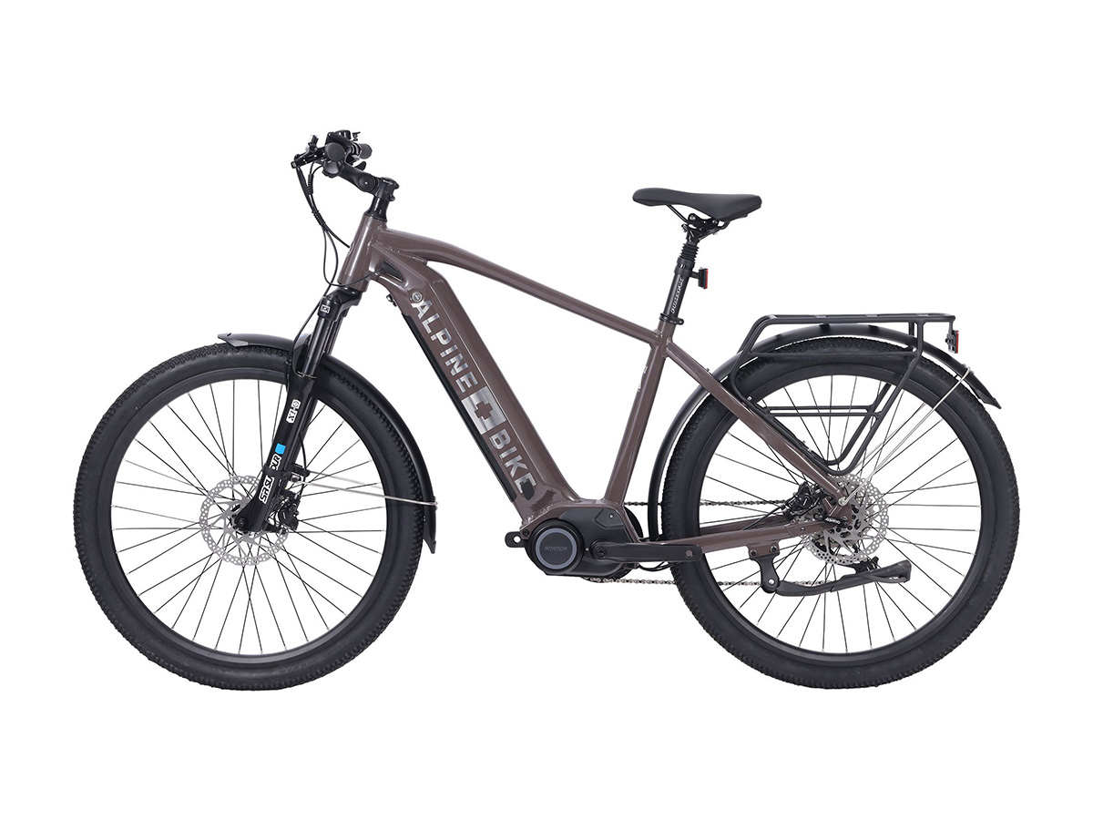 - легкая алюминиевая рама Alpinebike e-MTB (баттинг, гидроформинг, скрытая проводка, конический рулевой стакан, крепление калипера PM),