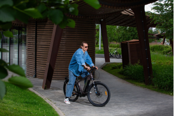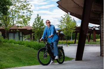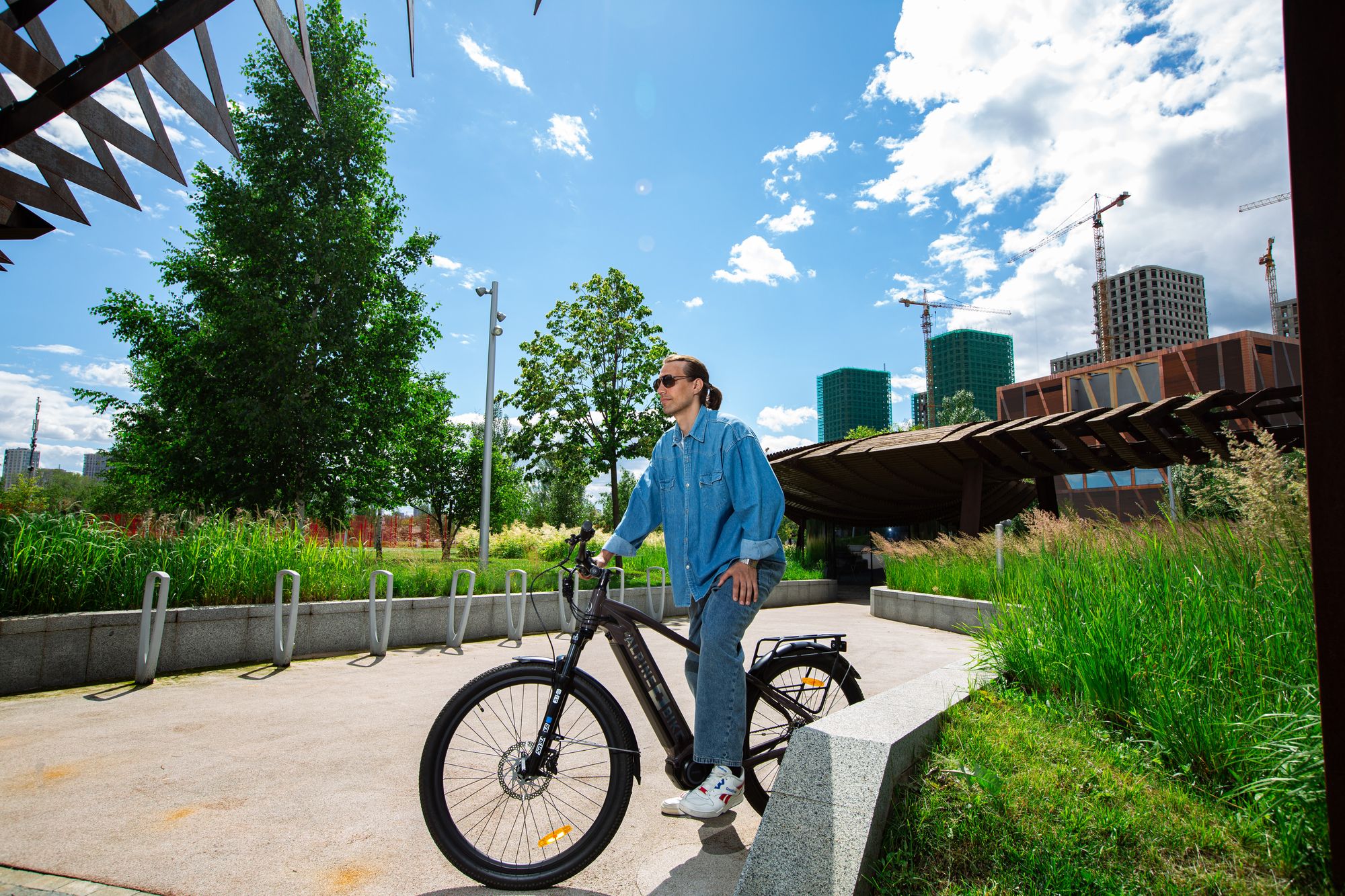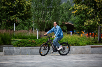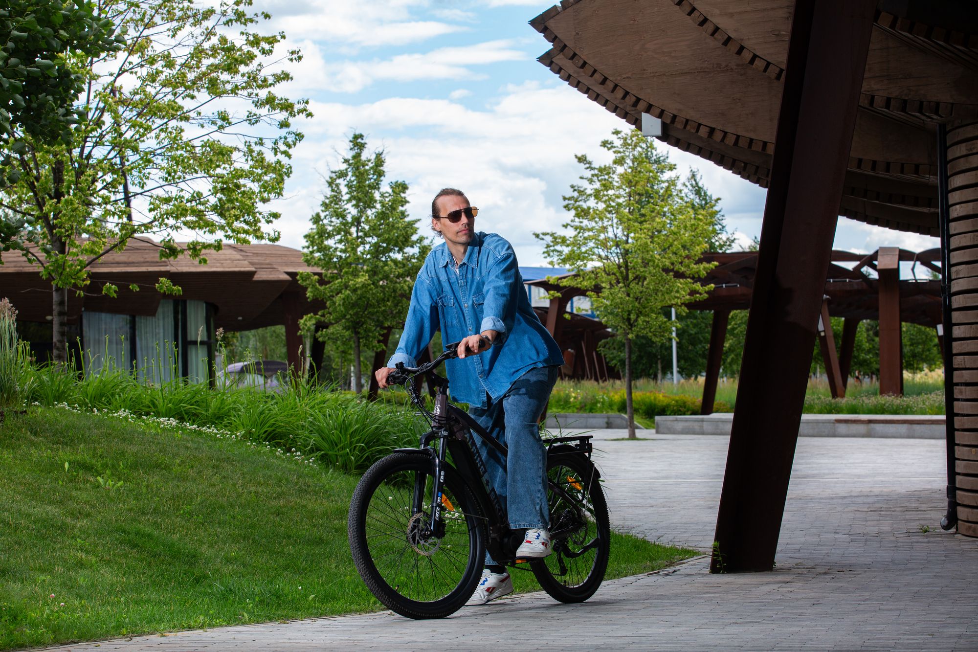 Спортивный электровелосипед с оборудованием высшего любительского класса Shimano, 9 скоростей. Подходит для активной езды по различным дорогам и пересеченной местности.