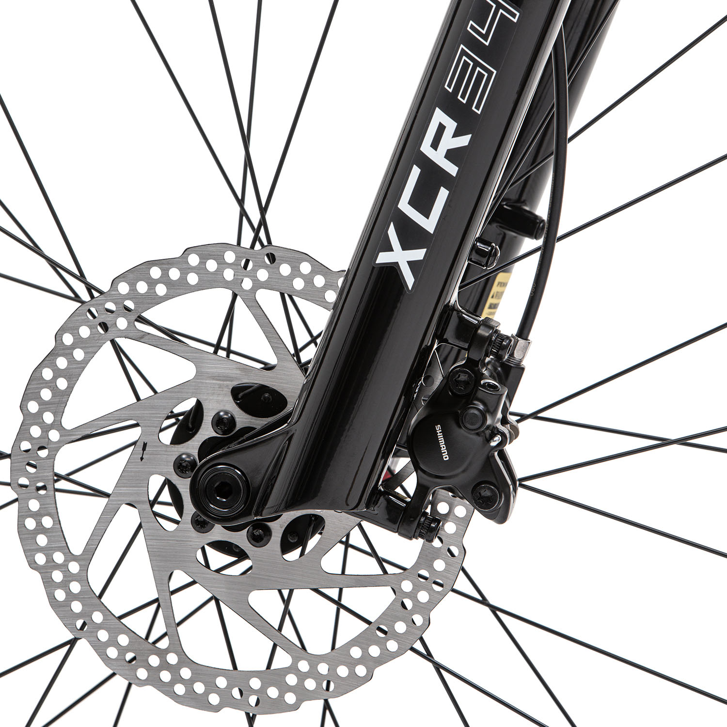 - амортизационная вилка Suntour XCR 34 (пружинно-масляная, ход 120 мм, гидравлическая блокировка, регулировка отскока, крепление калипера PM),