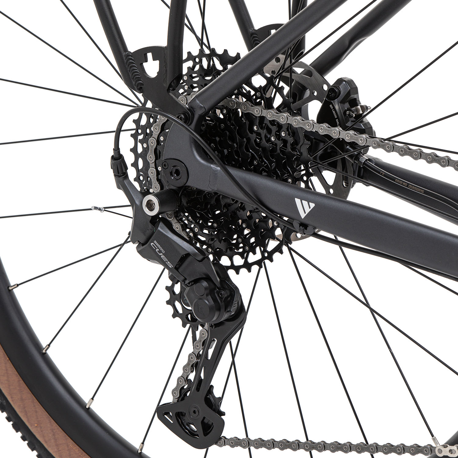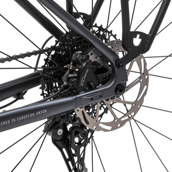 - алюминиевая рама (сплав 6061, гидроформинг, баттинг, скрытая проводка, компенсация швов, сквозная ось, крепление калипера Flat Mount),