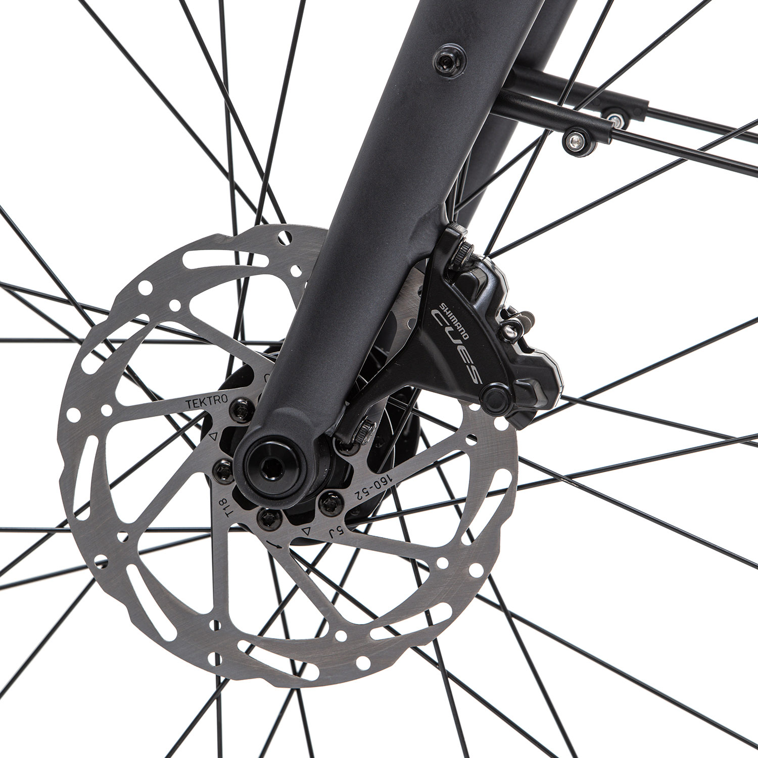 - жесткая алюминиевая вилка (сплав 6061, скрытая проводка, компенсация швов, крепление калипера Flat Mount),