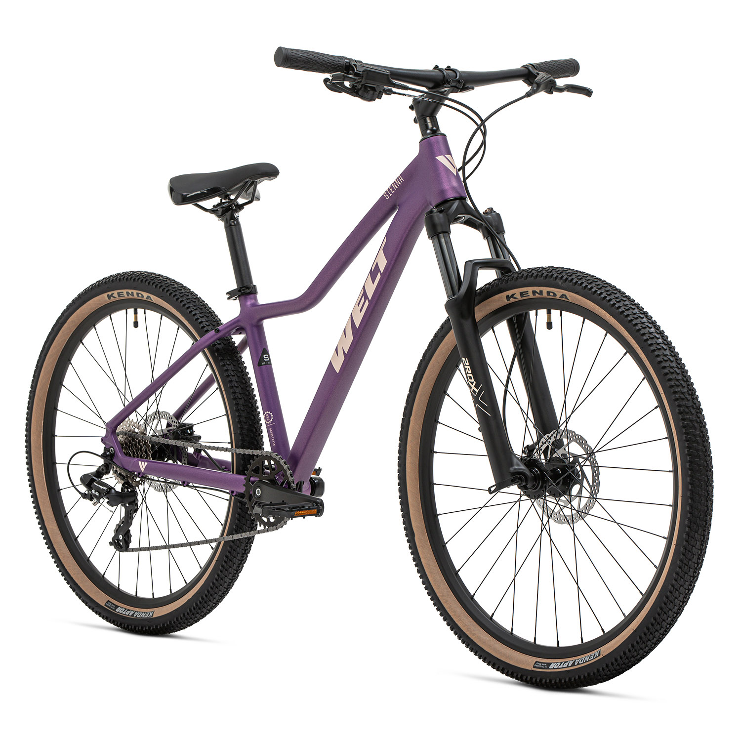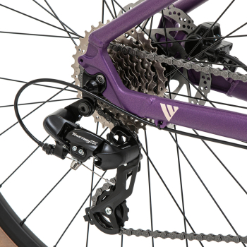 Женский горный велосипед с оборудованием начального любительского класса Shimano, 8 скоростей. Технические особенности: легкая алюминиевая рама (сплав 6061, частично скрытая проводка, конический рулевой стакан, кареточный стакан BSA, съемный петух, крепление калипера PM), амортизационная вилка 2ROXX 362 MLO (пружинно-эластомерная, ход 110 мм, механическая блокировка MLO, регулировка преднагрузки, покрытие ног QPQ, крепление калипера PM), двойные алюминиевые обода (под ниппель AV), дисковые гидравлические тормоза Tektro TKD176 (роторы 160/160 мм). Подходит для активной езды по различным дорогам и пересеченной местности. Диаметр колес - 27,5 дюймов. Вес - 14,5 кг.