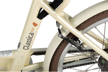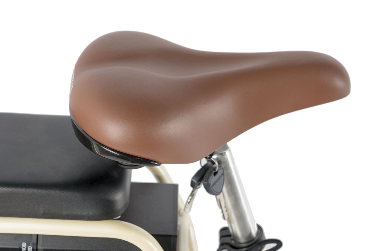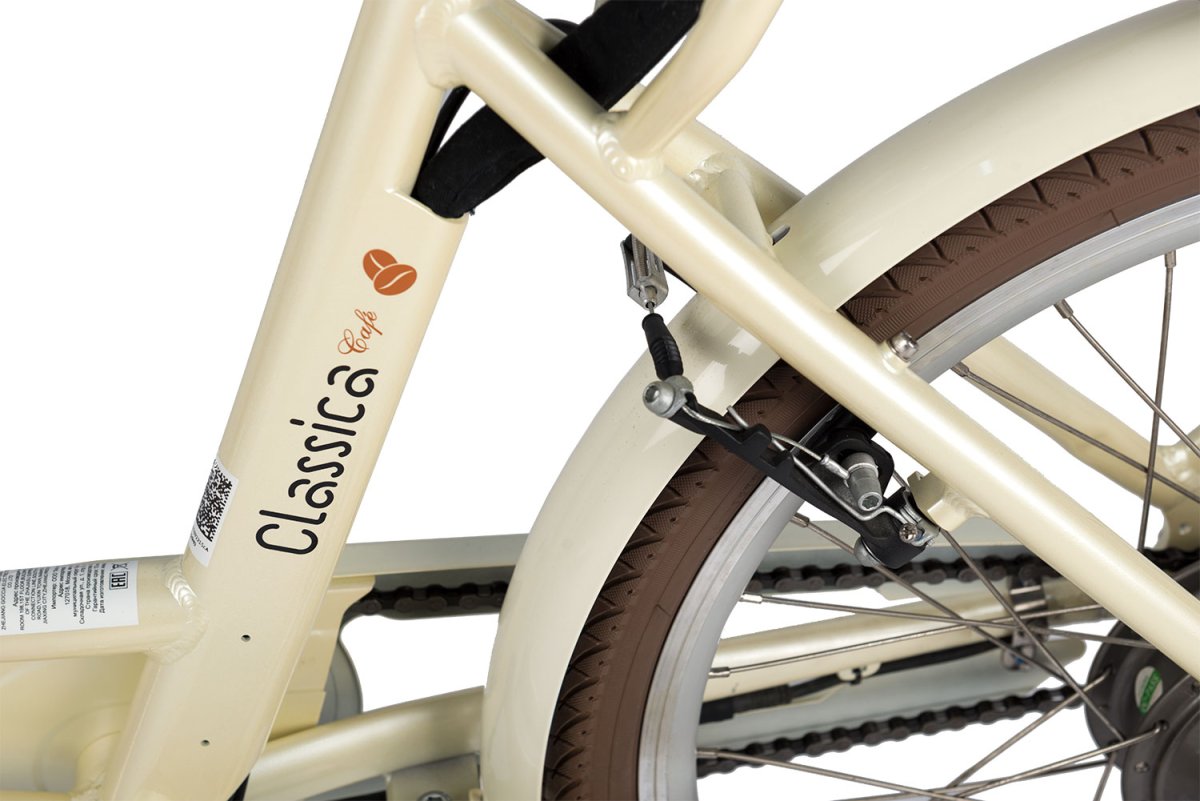 - интегрированный багажник с мягким сиденьем, полноразмерные крылья с брызговиками, передняя корзина, защита цепи, система освещения, подножка.
