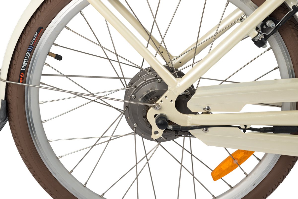 Городской электровелосипед без переключения передач. Подходит для прогулочного катания в городских условиях. Диаметр колес - 24 дюйма. Вес - 25 кг.