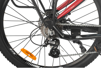 Спортивный электровелосипед с оборудованием начального любительского класса Shimano, 24 скорости. Подходит для активной езды по различным дорогам и пересеченной местности. Диаметр колес - 27,5 дюймов. Вес - 24 кг.