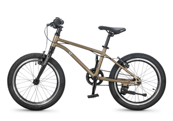 Велосипед, предназначенный для детей в возрасте от четырех до восьми лет, без переключения передач. Технические особенности: легкая алюминиевая рама (сплав 6061, скрытая проводка, прямой рулевой стакан, кареточный стакан BSA, горизонтальные дропауты), жесткая алюминиевая вилка (сплав 6061, крепление под V-brake), двойные алюминиевые обода (под ниппель AV), надежные ободные тормоза типа V-brake, защита цепи, звонок, подножка. Максимальная нагрузка - до 40 кг. Подходит для обучения и прогулочного катания в городских условиях. Диаметр колес - 18 дюймов. Вес - 7,8 кг.