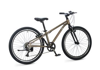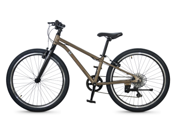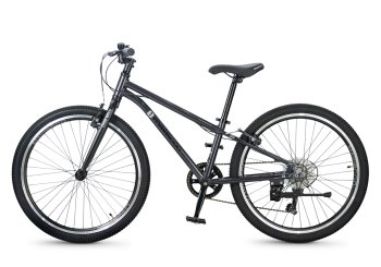 Велосипед, предназначенный для детей в возрасте от восьми до тринадцати лет, с оборудованием начального класса Shimano, 6 скоростей. Технические особенности: легкая алюминиевая рама (сплав 6061, скрытая проводка, прямой рулевой стакан, кареточный стакан BSA, съемный петух), жесткая алюминиевая вилка (сплав 6061, крепление под V-brake), двойные алюминиевые обода (под ниппель AV), надежные ободные тормоза типа V-brake, защита цепи, звонок, подножка. Максимальная нагрузка - до 50 кг. Подходит для обучения и прогулочного катания в городских условиях. Диаметр колес - 24 дюйма. Вес - 9 кг.