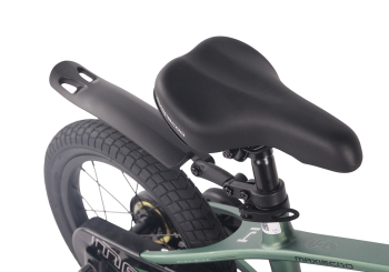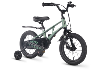 Велосипед, предназначенный для детей в возрасте от двух до четырех лет, без переключения передач. Технические особенности: легкая рама из магниевого сплава (скрытая проводка, прямой рулевой стакан, крепление калипера IS), жесткая стальная вилка, одинарные алюминиевые обода (под ниппель AV), передний тормоз - ободной клещевой U-brake, задний тормоз - ножной, полная защита цепи, съемные боковые колеса, звонок. Максимальная нагрузка - до 40 кг. Подходит для обучения и прогулочного катания в городских условиях. Диаметр колес - 14 дюймов. Вес - 8,6 кг.