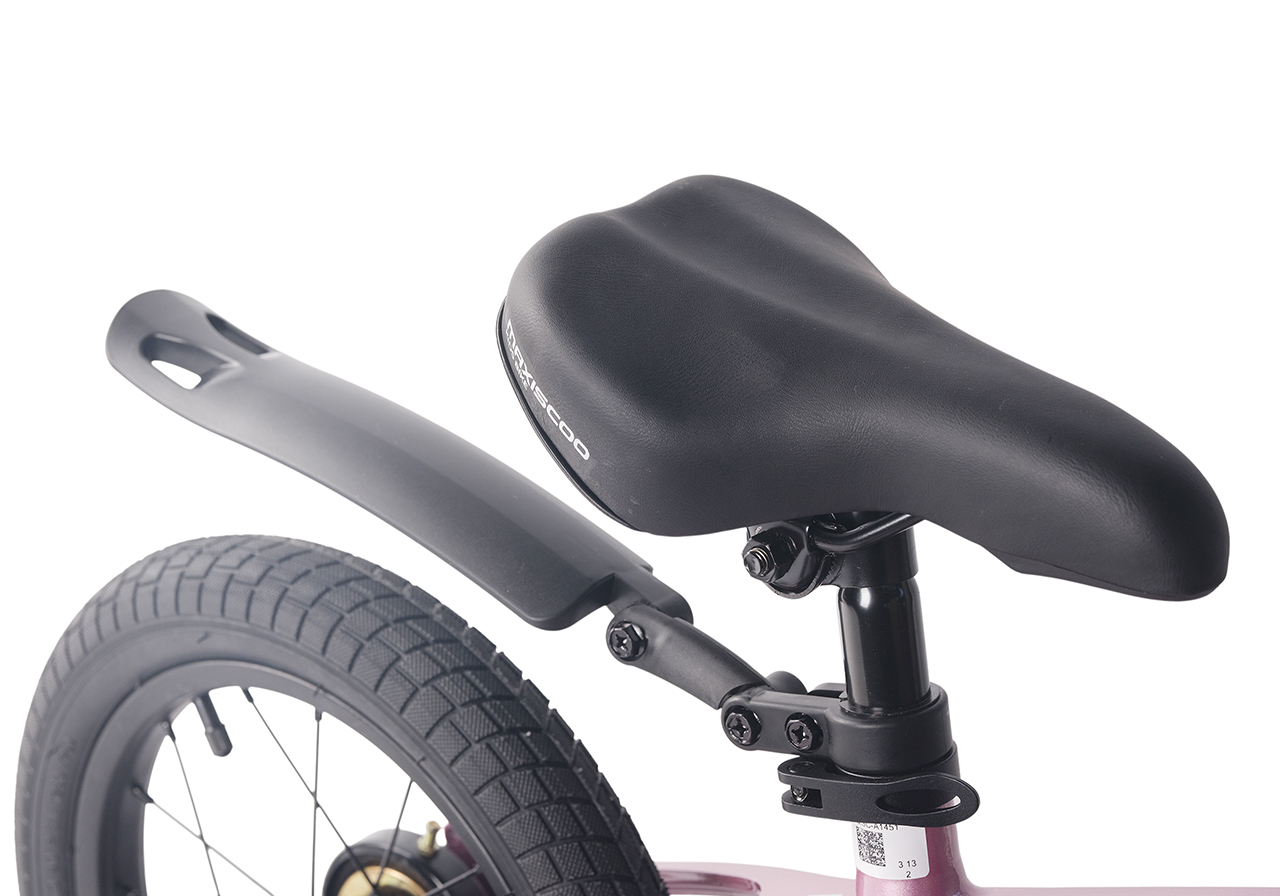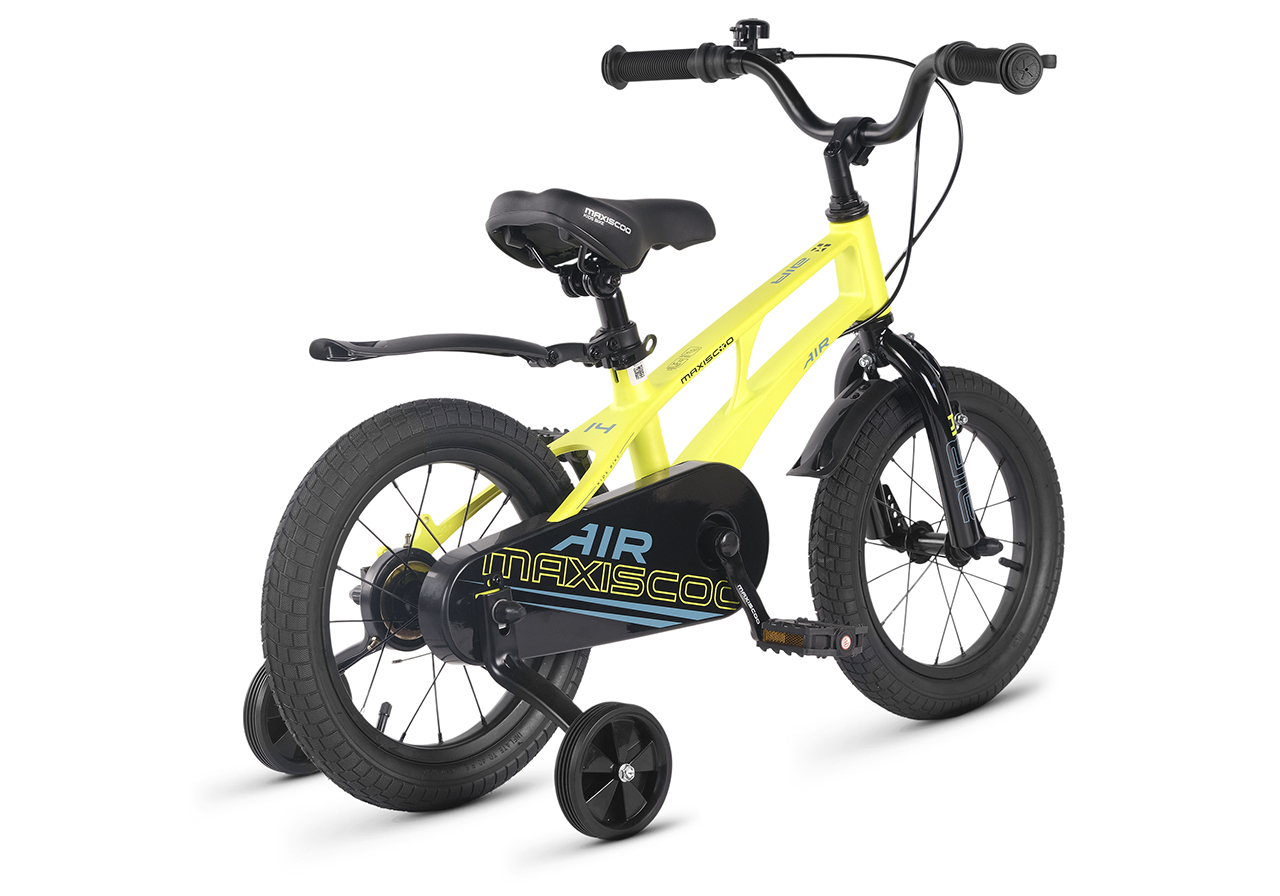 Велосипед, предназначенный для детей в возрасте от двух до четырех лет, без переключения передач. Технические особенности: легкая рама из магниевого сплава (скрытая проводка, прямой рулевой стакан, крепление калипера IS), жесткая стальная вилка, одинарные алюминиевые обода (под ниппель AV), передний тормоз - ободной клещевой U-brake, задний тормоз - ножной, полная защита цепи, съемные боковые колеса, звонок. Максимальная нагрузка - до 40 кг. Подходит для обучения и прогулочного катания в городских условиях. Диаметр колес - 14 дюймов. Вес - 8,6 кг.