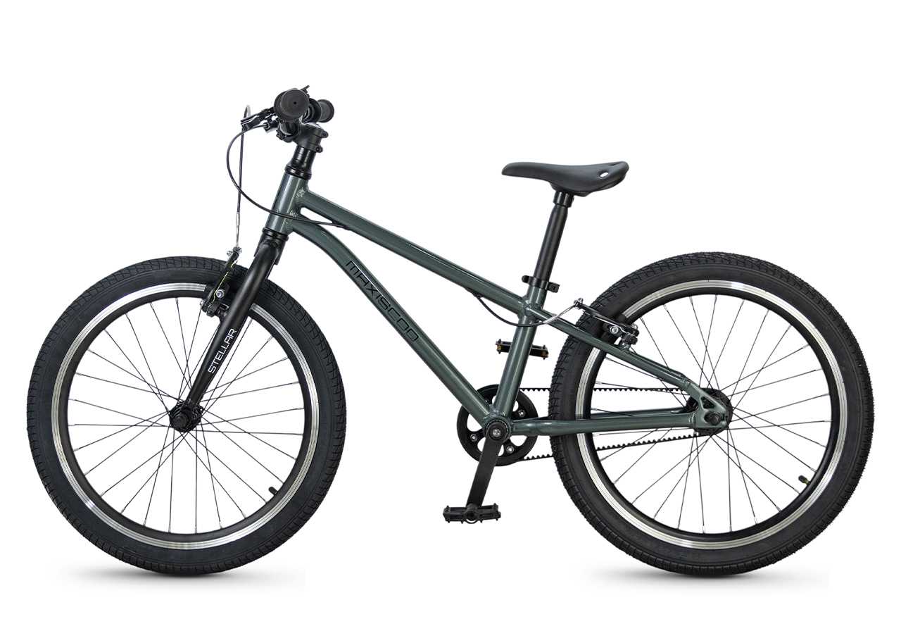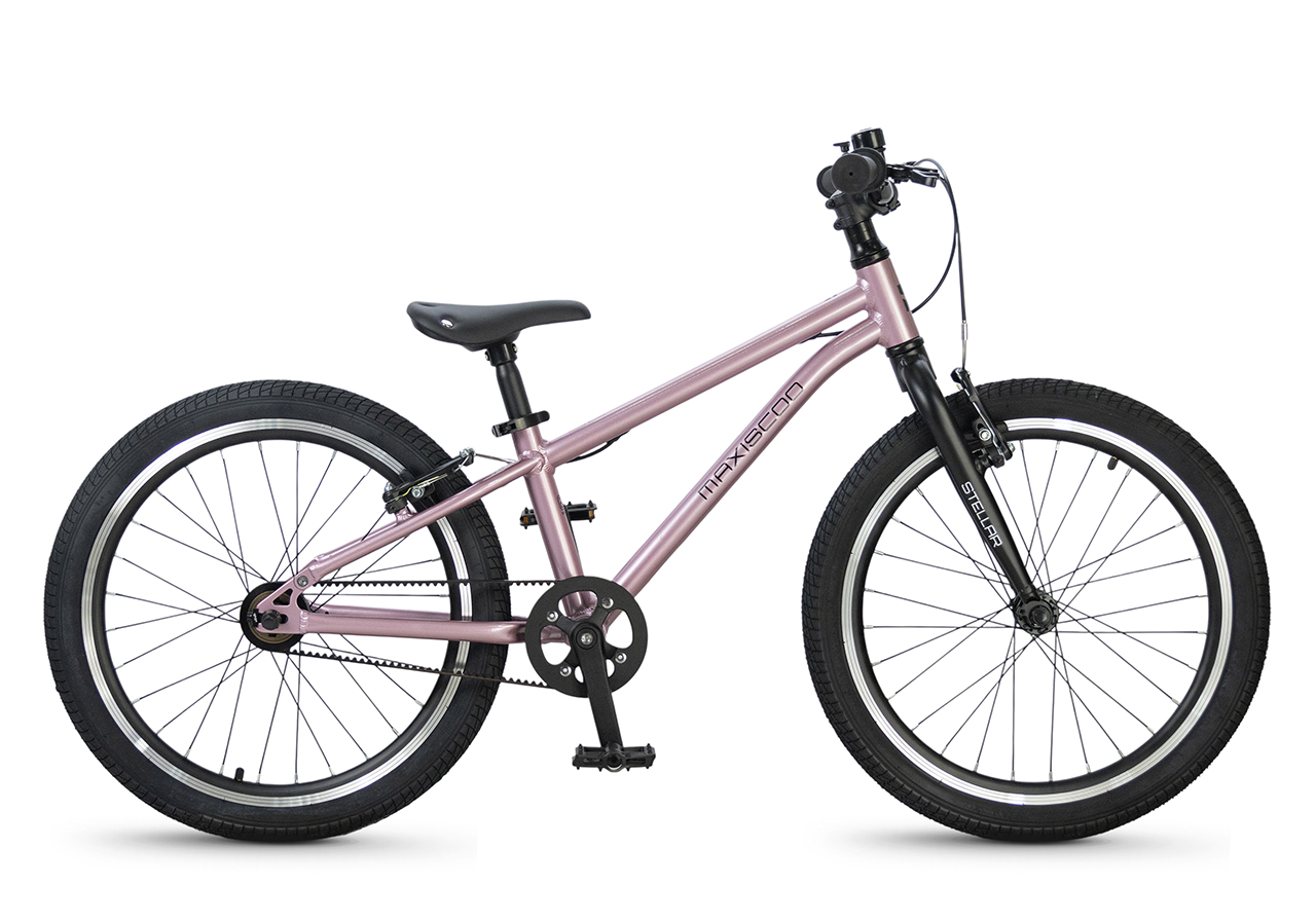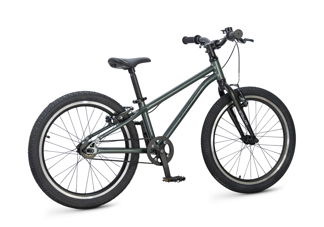 Велосипед, предназначенный для детей в возрасте от пяти до девяти лет, без переключения передач. Технические особенности: легкая алюминиевая рама (сплав 6061, скрытая проводка, прямой рулевой стакан, кареточный стакан BSA, горизонтальные дропауты), жесткая алюминиевая вилка (крепление под V-brake), двойные алюминиевые обода (под ниппель AV), надежные ободные тормоза типа V-brake, ременной привод, защита цепи, звонок. Максимальная нагрузка - до 40 кг. Подходит для обучения и прогулочного катания в городских условиях. Диаметр колес - 20 дюймов. Вес - 7,8 кг.