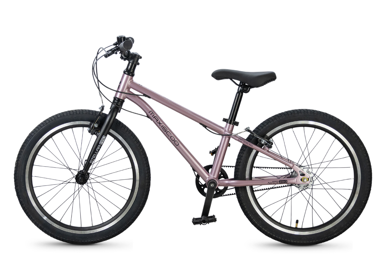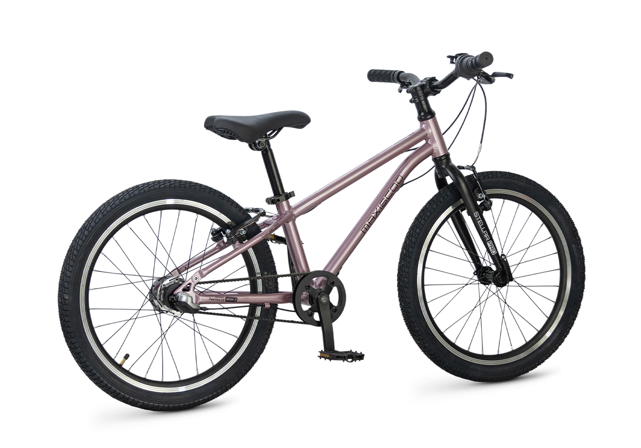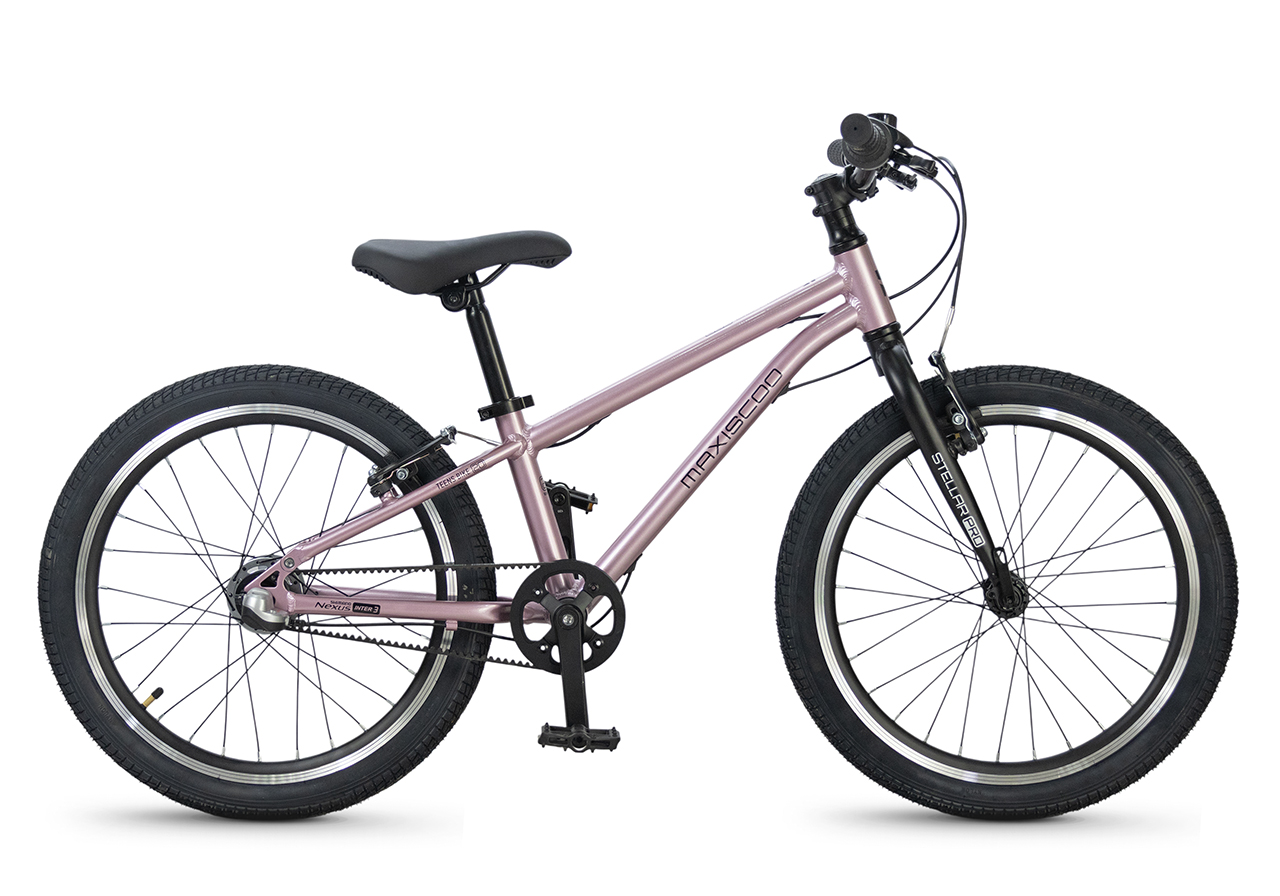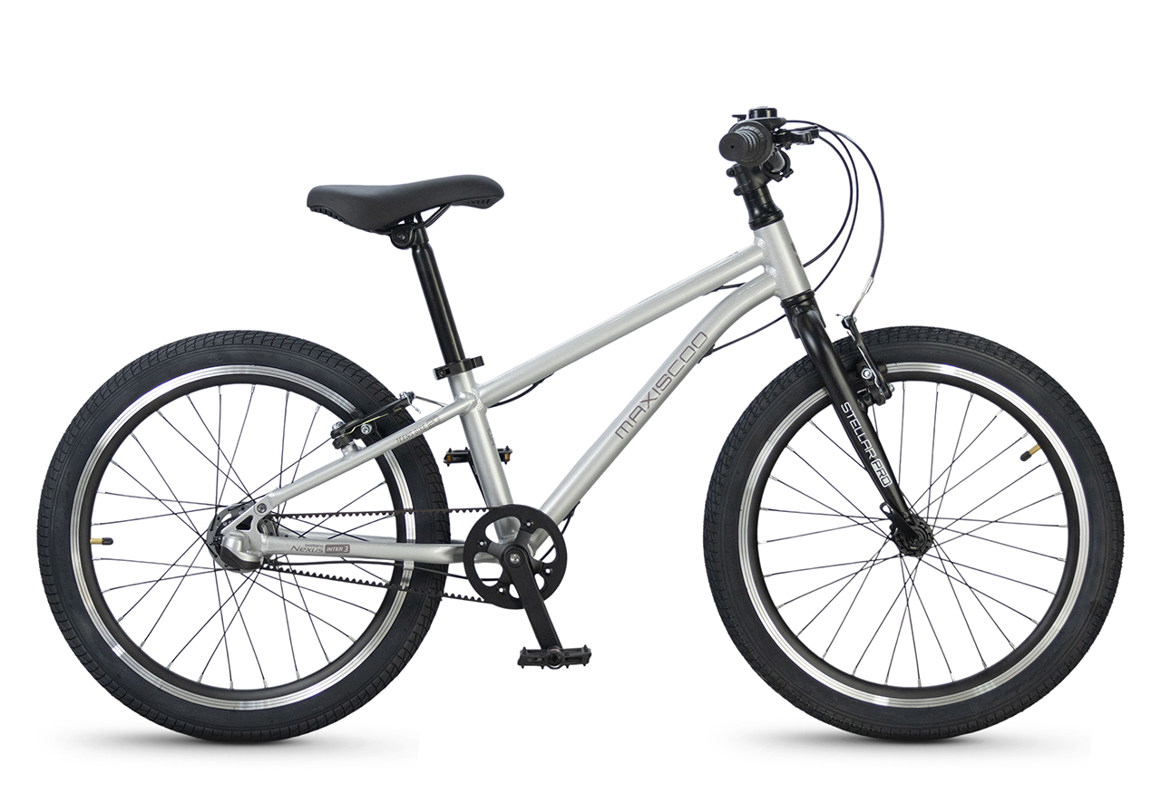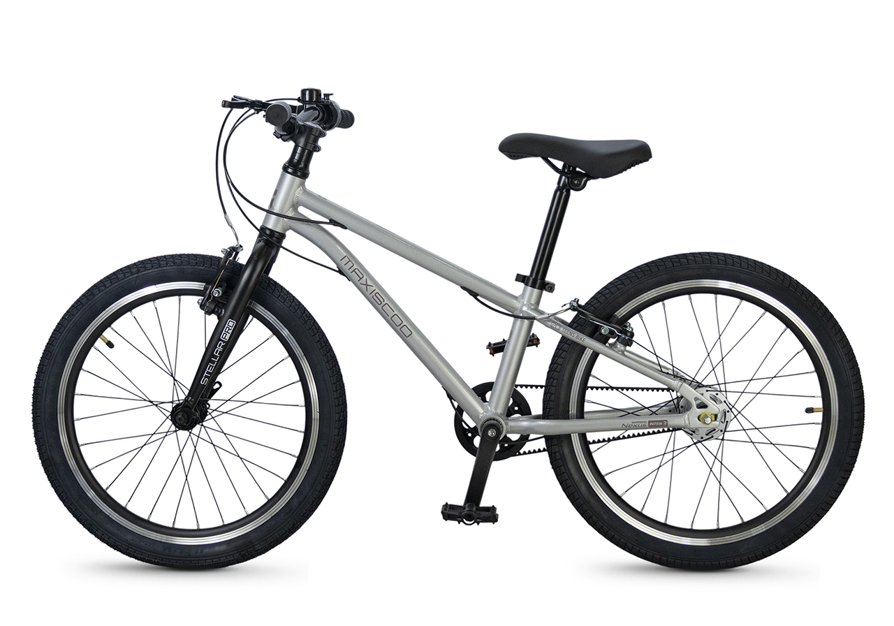 Велосипед, предназначенный для детей в возрасте от пяти до девяти лет, с оборудованием планетарного типа Shimano, 3 скорости. Технические особенности: легкая алюминиевая рама (сплав 6061, скрытая проводка, прямой рулевой стакан, кареточный стакан BSA, горизонтальные дропауты), жесткая алюминиевая вилка (крепление под V-brake), двойные алюминиевые обода (под ниппель AV), надежные ободные тормоза типа V-brake, ременной привод, защита цепи, звонок. Максимальная нагрузка - до 50 кг. Подходит для обучения и прогулочного катания в городских условиях. Диаметр колес - 20 дюймов. Вес - 8,4 кг.