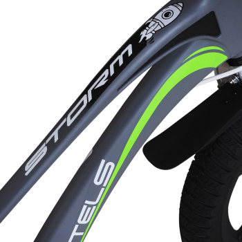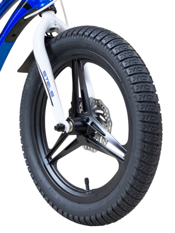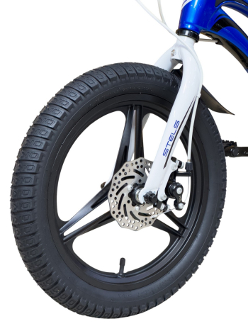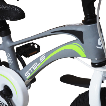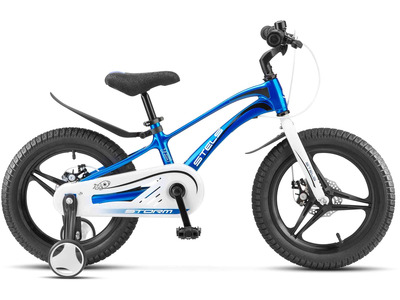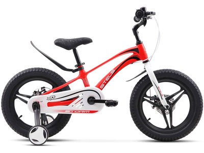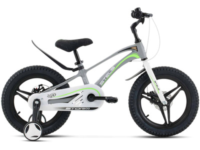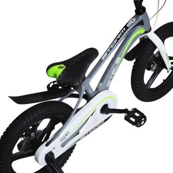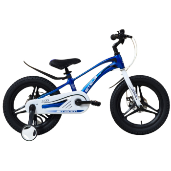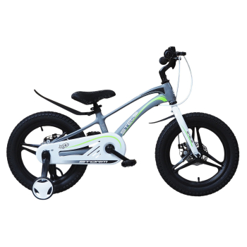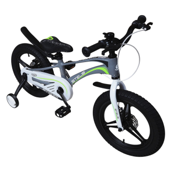 Велосипед, предназначенный для детей в возрасте от трех до шести лет, без переключения передач. Технические особенности: легкая рама из магниевого сплава (скрытая проводка, прямой рулевой стакан, кареточный стакан BSA, крепление калипера IS), жесткая стальная вилка (крепление калипера IS), литые магниевые колеса (под ниппель AV), дисковые механические тормоза (роторы 120/120 мм), полная защита цепи, съемные боковые колеса, крылья, звонок. Подходит для обучения и прогулочного катания в городских условиях. Диаметр колес - 16 дюймов. Вес - 8,9 кг.